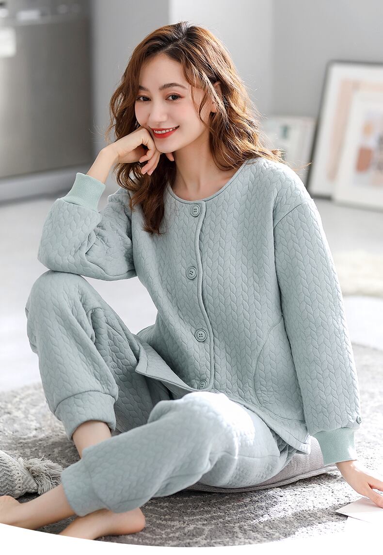 パジャマレディース春、秋、秋、厚手、純綿、長袖、ホームサービス、秋と冬、すべて綿、エア綿、キルティング中間層 jial21775356412