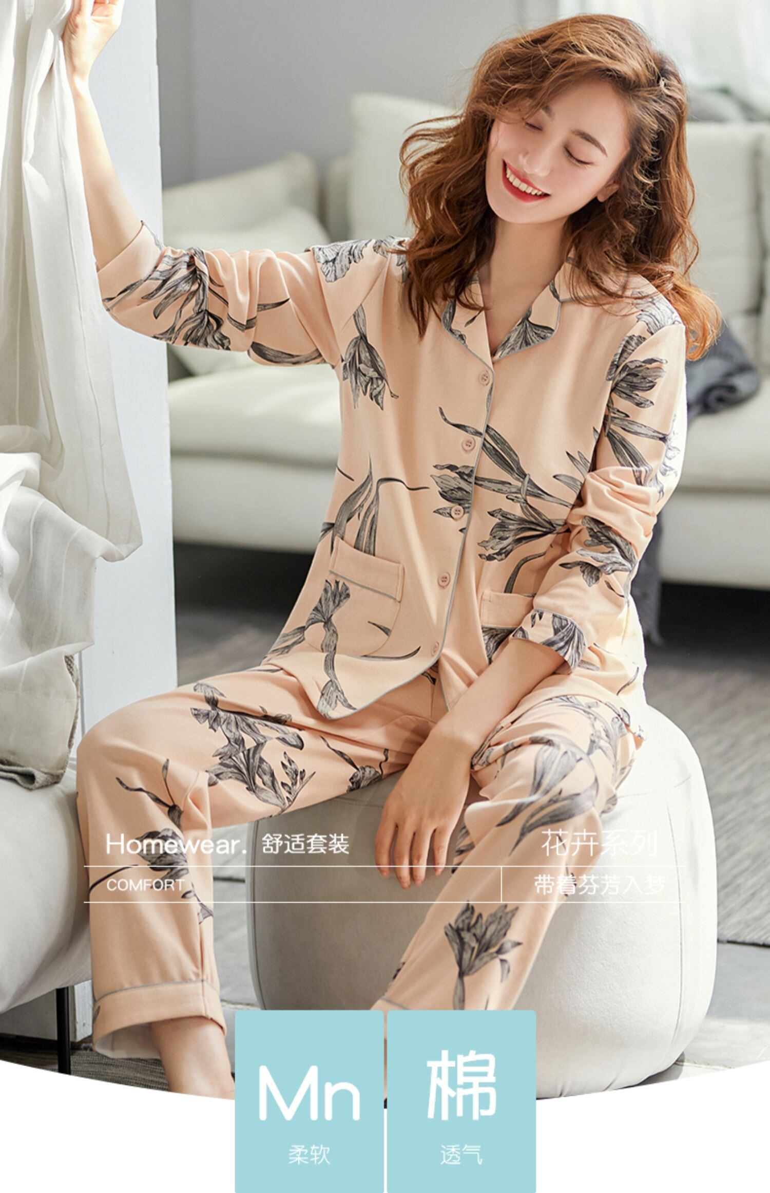 パジャマレディース春秋モデル秋コットン長袖ホームサービスコットン夏薄切り中年マザールーズスーツ jial76856590487