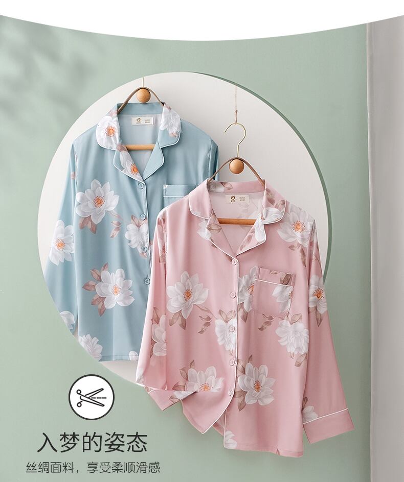 パジャマレディース春秋秋シルクアイスシルク長袖ホームサービス春夏夏薄手人工シルクスーツ jial32729710832