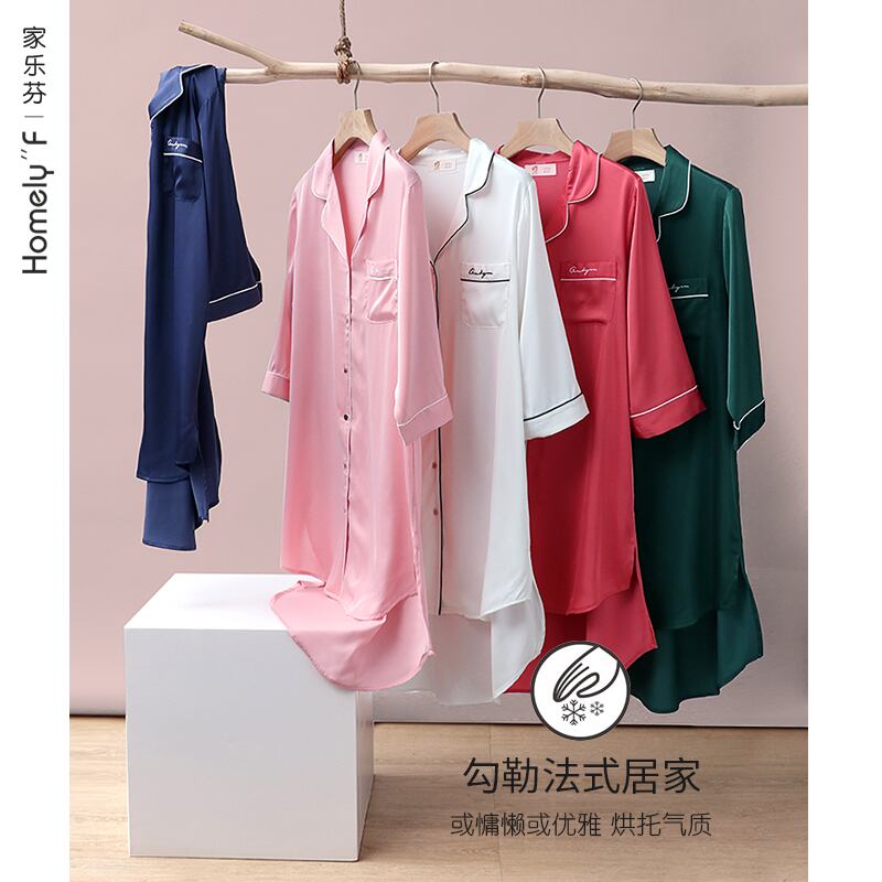 ナイトスカートレディースパジャマシルク春夏アイスシルク薄手のシャツイミテーションシルク夏レディースロングルーズラージサイズ jial70369866730