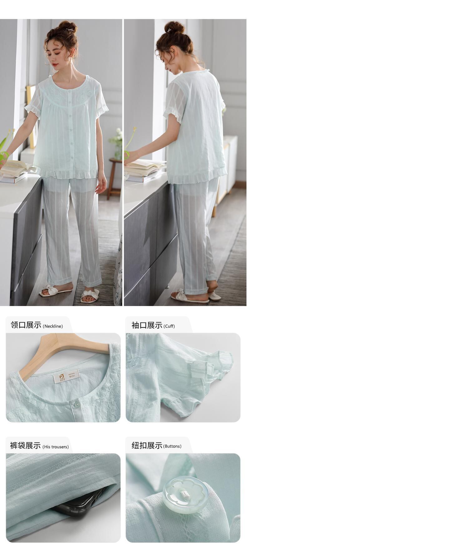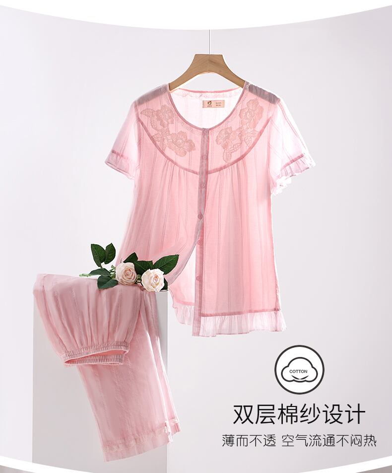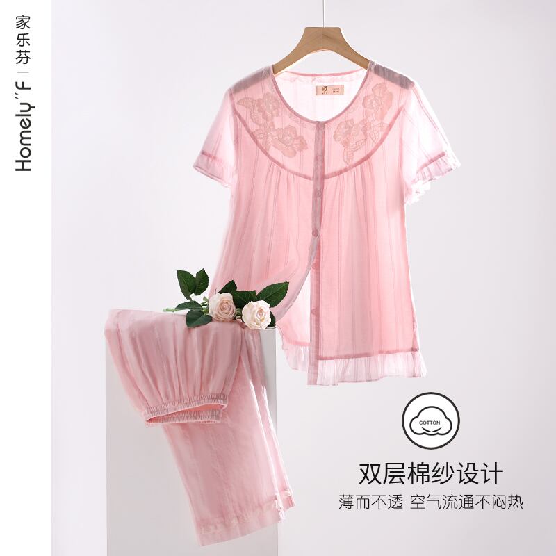 織り綿ガーゼパジャマレディース夏半袖ズボン純綿家庭服夏綿薄切りマザープラスサイズ jial4013526736