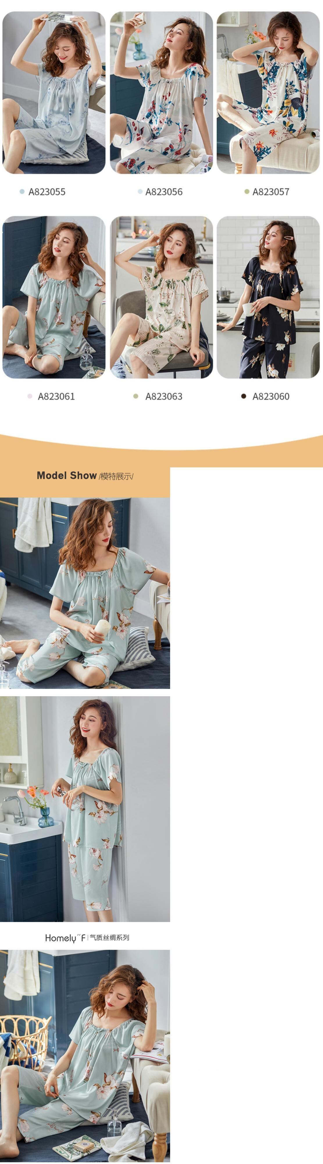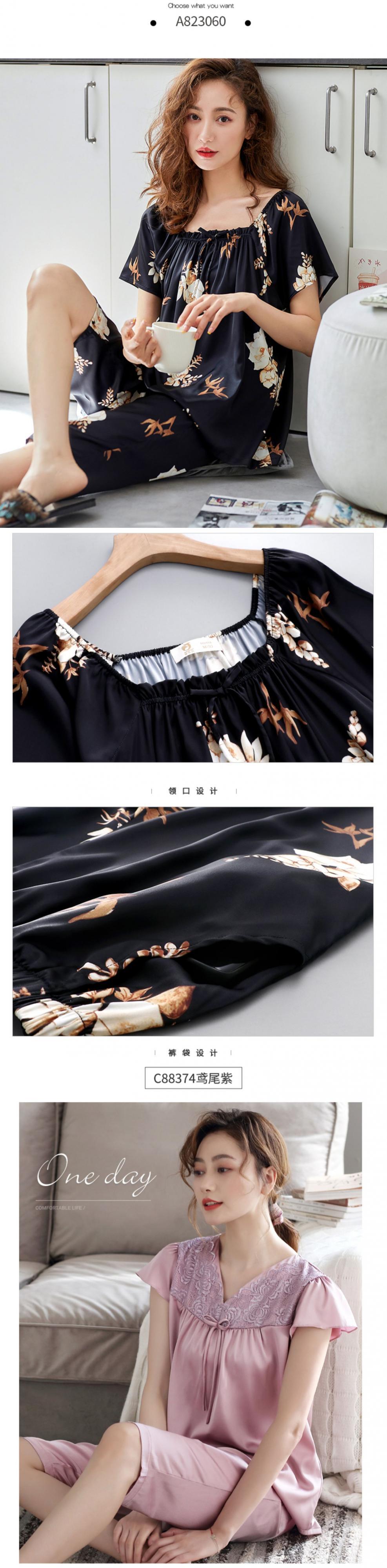 パジャマ女性夏シルクアイスシルク半袖クロップドパンツホームサービス夏薄中年マザーシミュレーションシルクスーツ jial54913960854