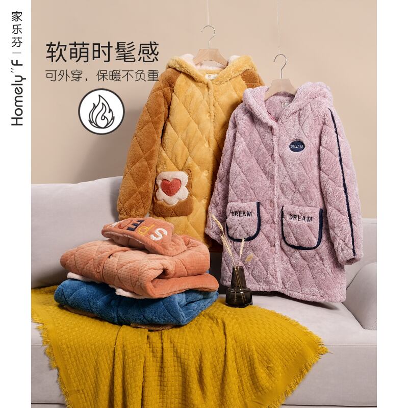 パジャマの女性の冬の3層の厚いコーラルフリースキルトジャケットフランネルとベルベットの暖かいホームサービス秋と冬のモデルの冬 jial85680510136