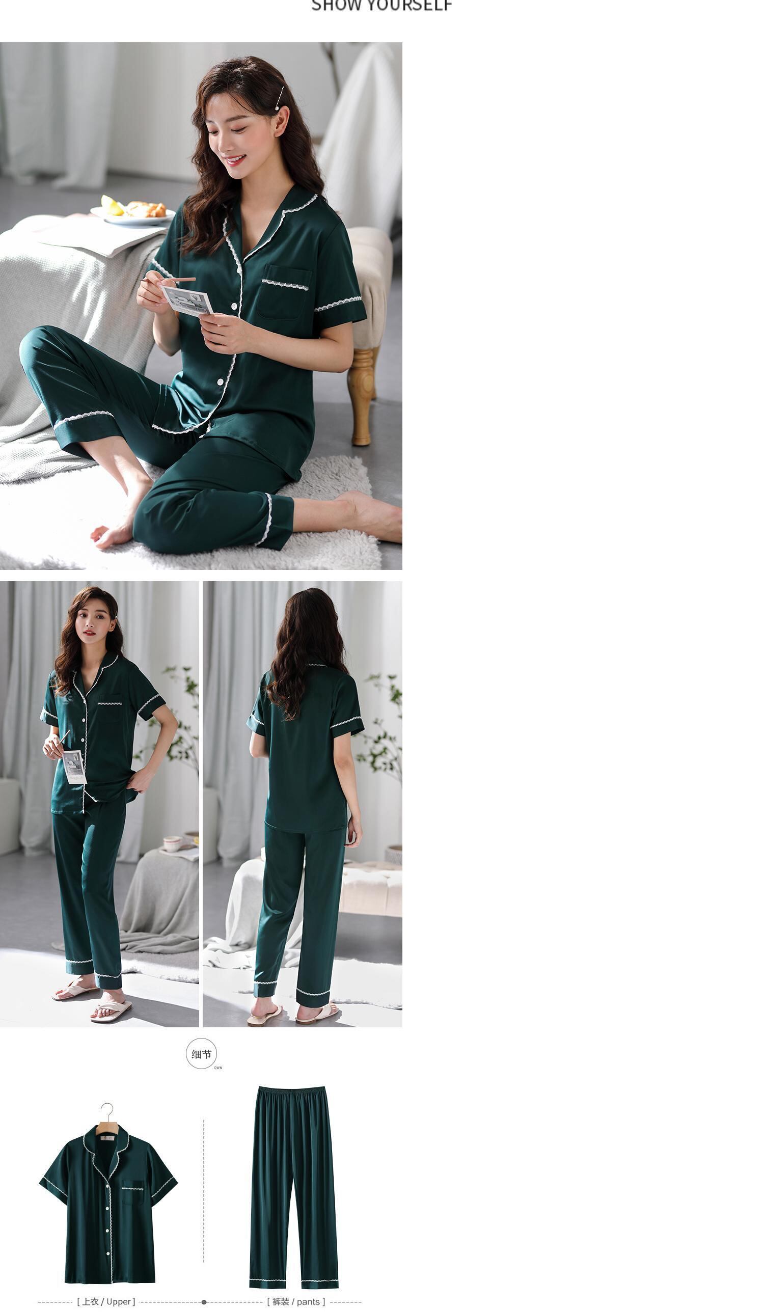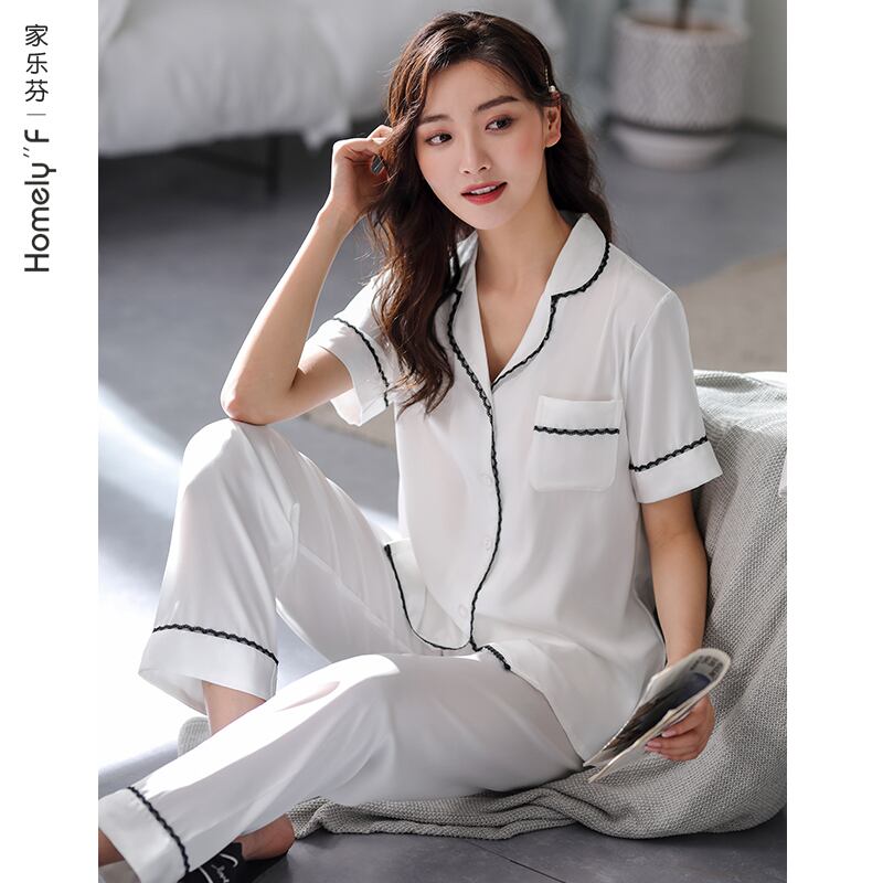 2021年新作パジャマ女性夏シルクアイスシルク半袖パンツホームサービス女性夏薄手人工シルク jial23131789437