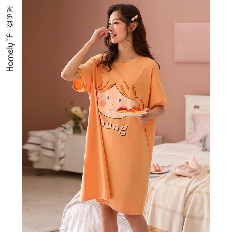 ナイトスカートレディースパジャマスカート夏夏純綿半袖綿薄手可愛いスウィートミッドスカートプラスサイズ jial7610668953