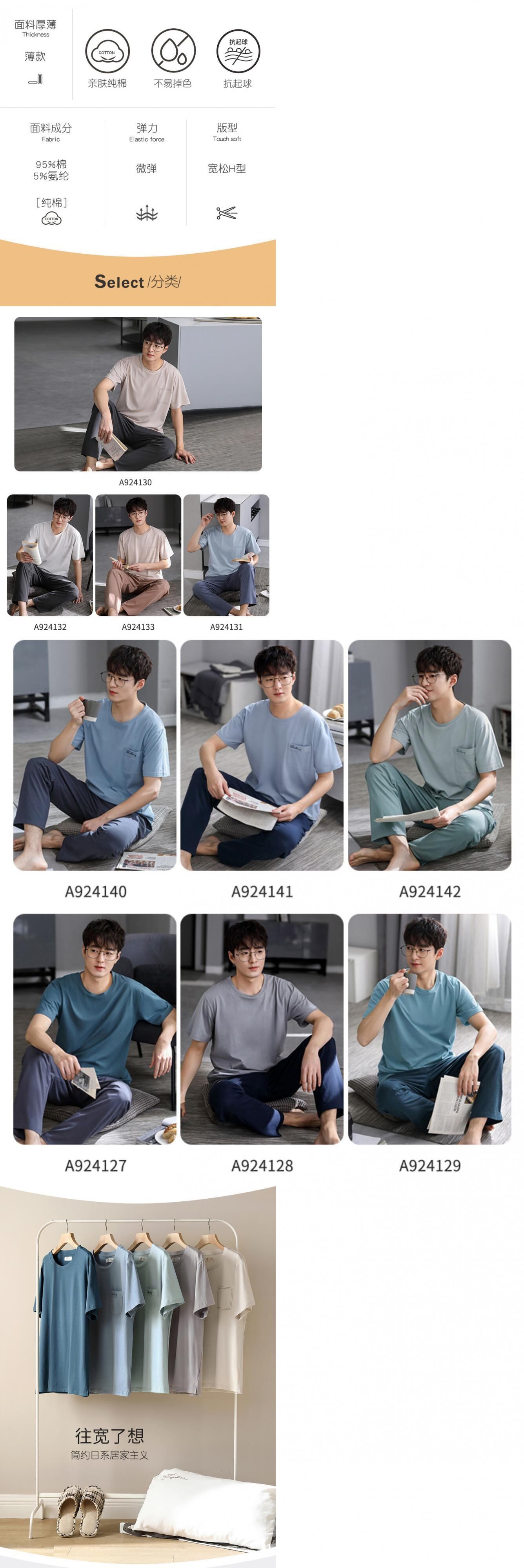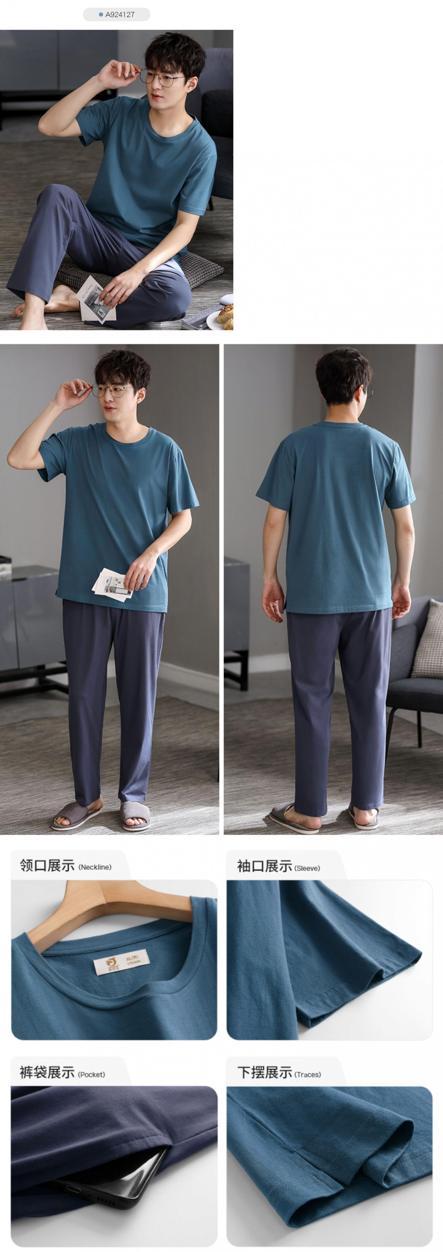 【ライクラコットン】2021年新作パジャマメンズサマーコットン半袖パンツホームサービスサマーシンスーツ jial16813187896