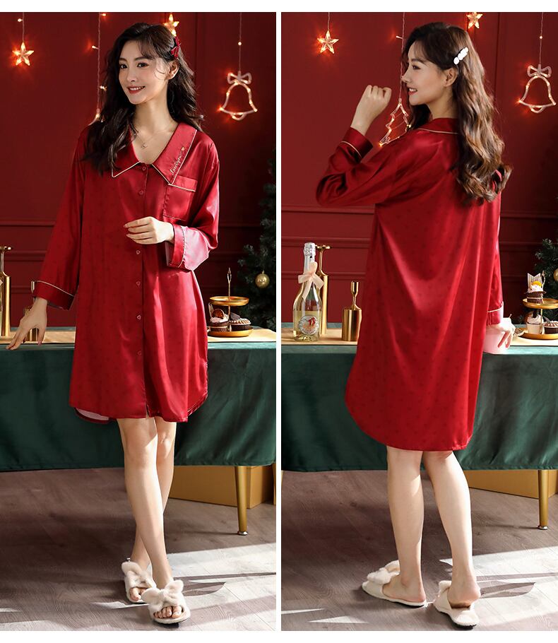 ナイトスカートレディースパジャマ春秋モデル秋シルクアイスシルク長袖出生年赤ウエディングブライダルシャツカーディガン jial79928289371