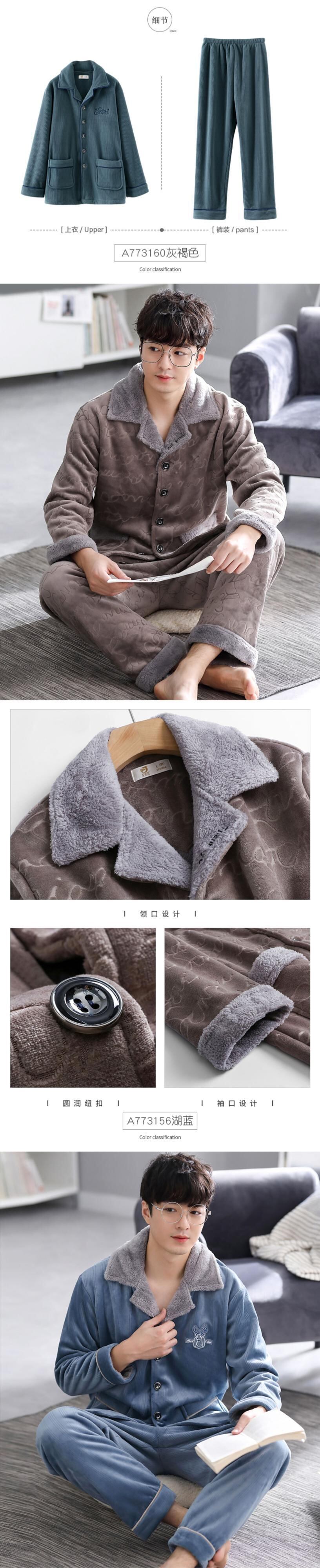 冬の珊瑚フリース複合キルティング肥厚とベルベットの暖かい冬のフランネルホームサービスのパジャマメンズ秋と冬のモデル jial31545118786