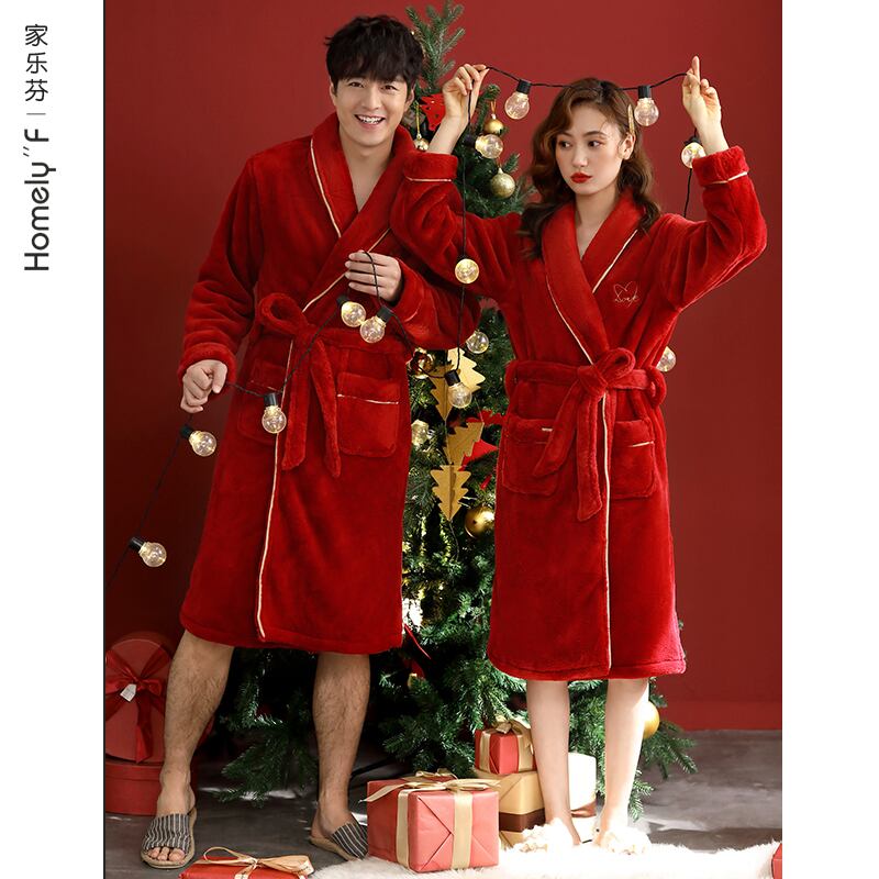 結婚式のパジャマ男性の新婚カップルのスーツ赤い秋と冬のモデル冬の出生年朝のローブナイトガウンバスローブ女性のスーツ jial33429178496