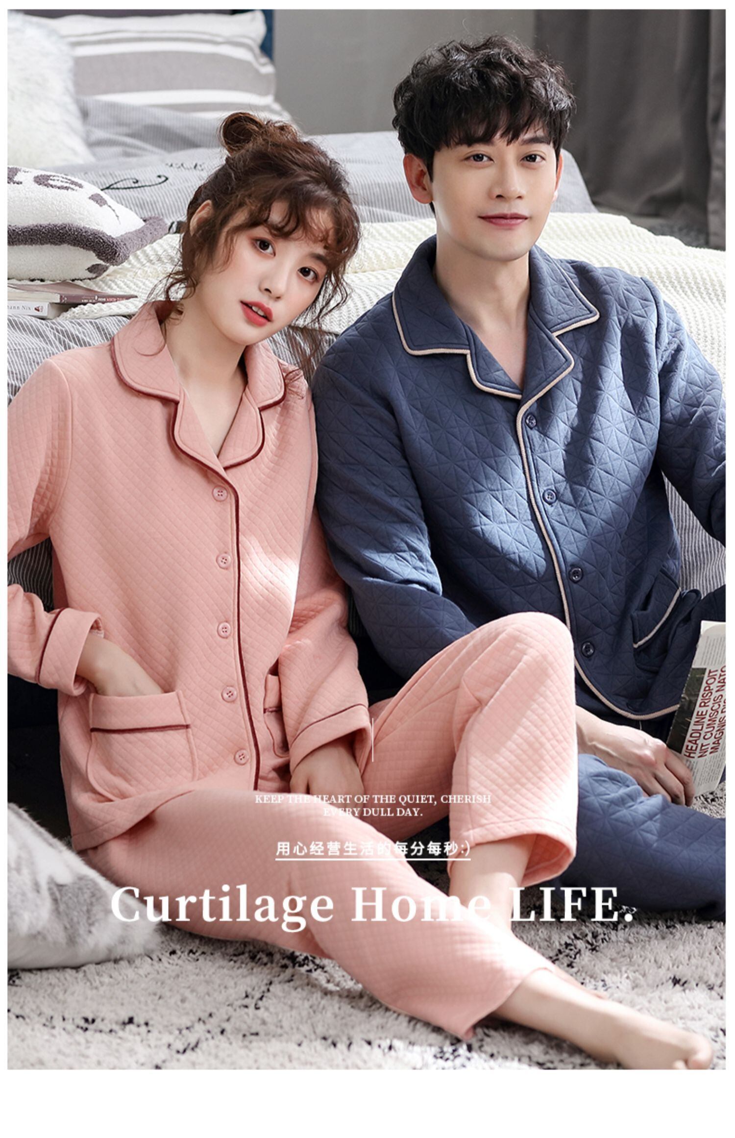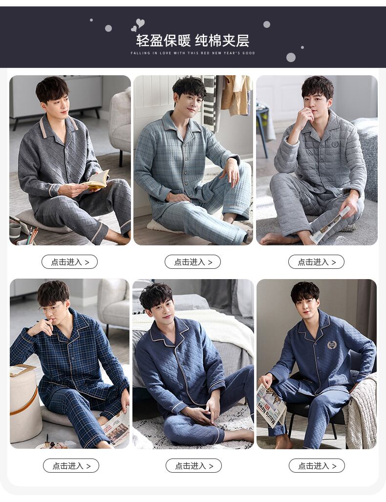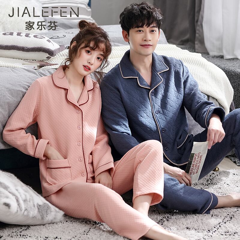 カップルパジャマ、メンズ春秋モデル、厚手のコットン長袖ホームウェア、レディース秋冬モデル、薄手のキルティングスーツ jial72599328212