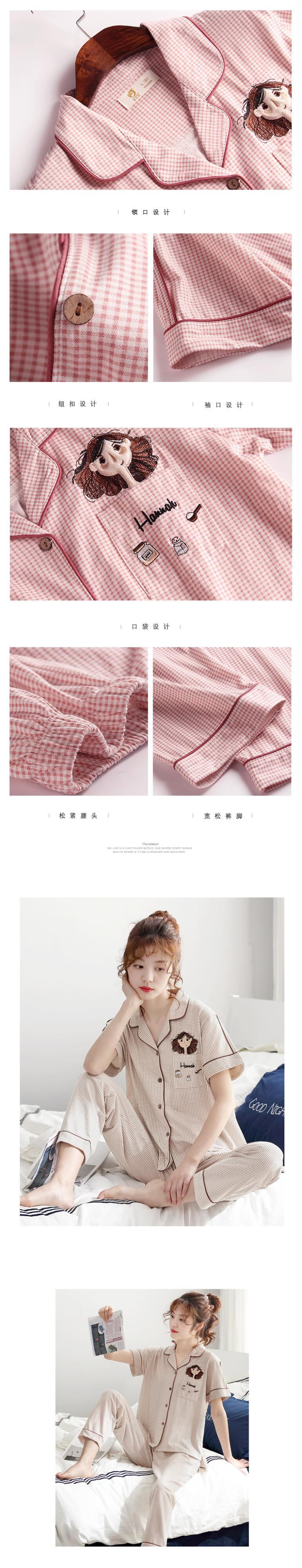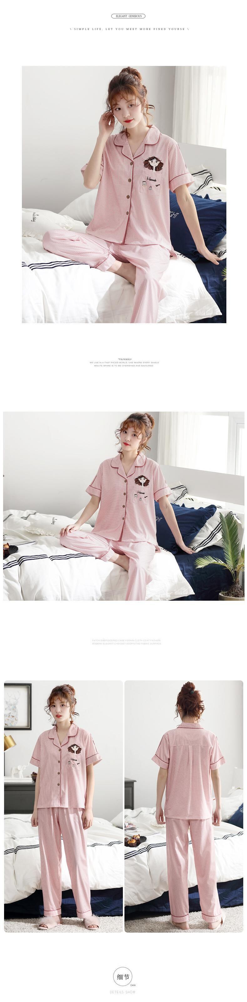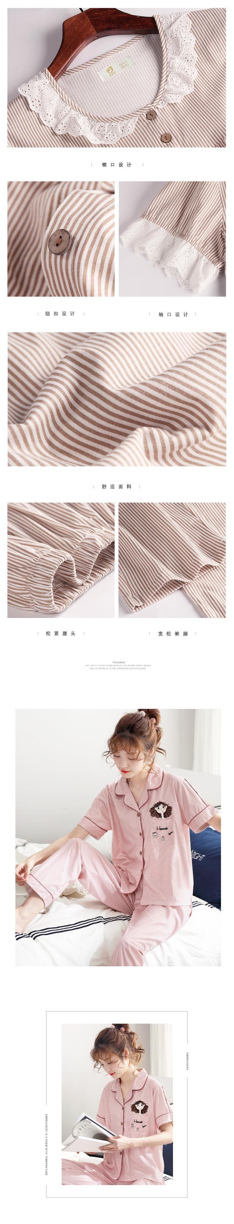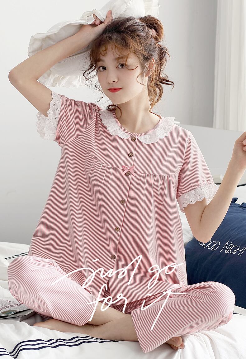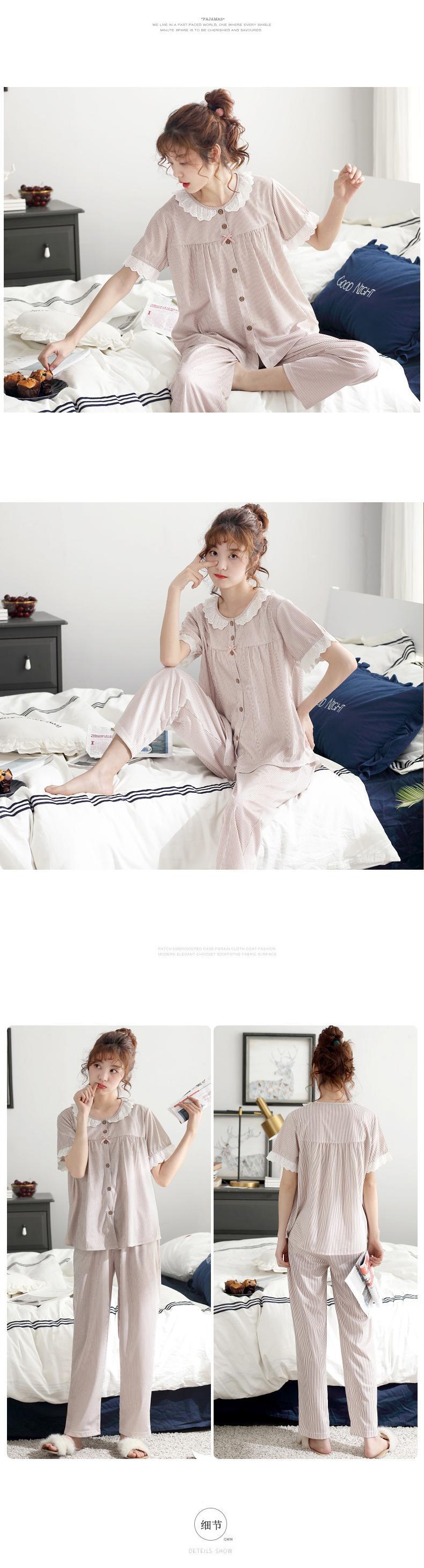 パジャマレディースサマーコットン半袖パンツカーディガンコットンホームサービスフレッシュバージョンXLサマースーツ jial92913326946