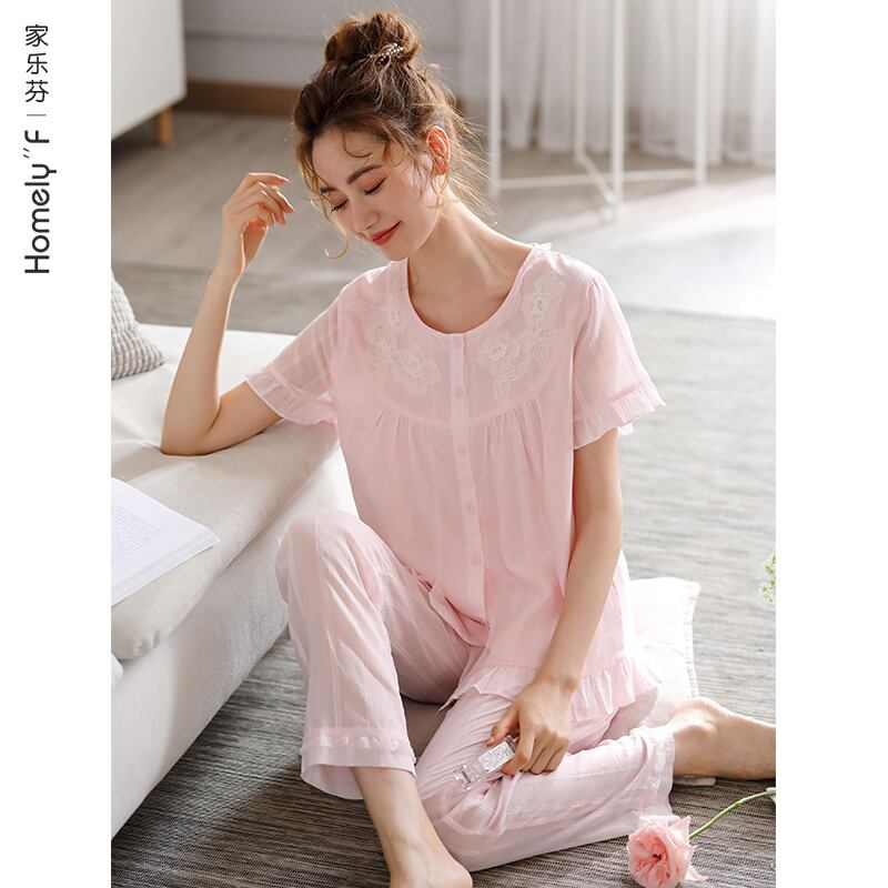 綿ガーゼパジャマレディース夏半袖ズボン純綿家庭服夏綿薄切りマザープラスサイズ jial8508745362