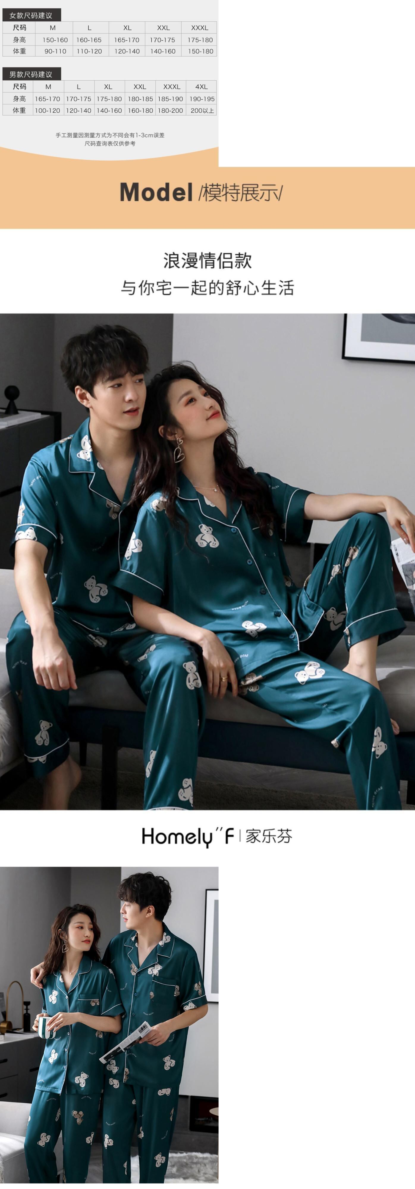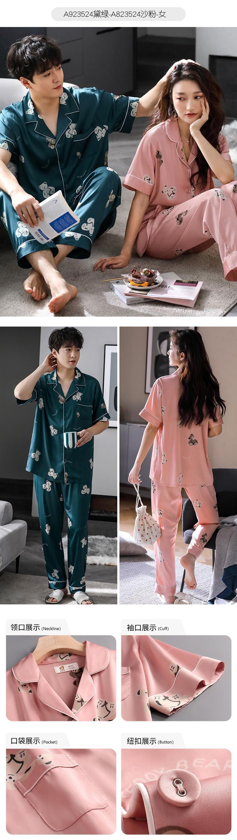 カップルパジャマメンズサマーアイスシルク半袖パンツホームサービスレディースサマー薄切片シミュレーションシルク漫画スーツ jial39224321594