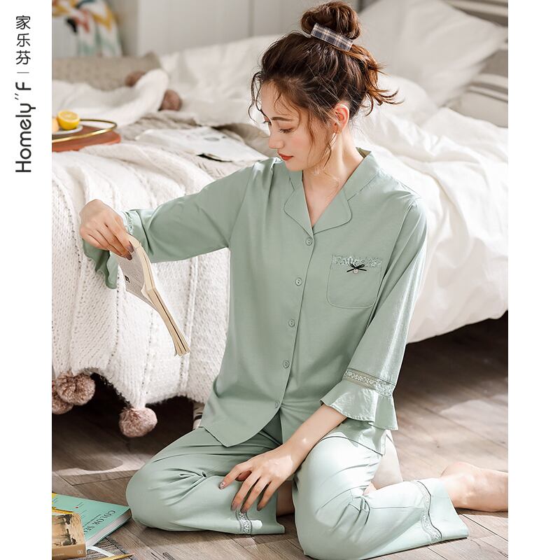 【マーセルコットン】パジャマレディース春夏コットン七分袖長袖ホームサービスコットン春秋薄手のスーツ jial98240654440