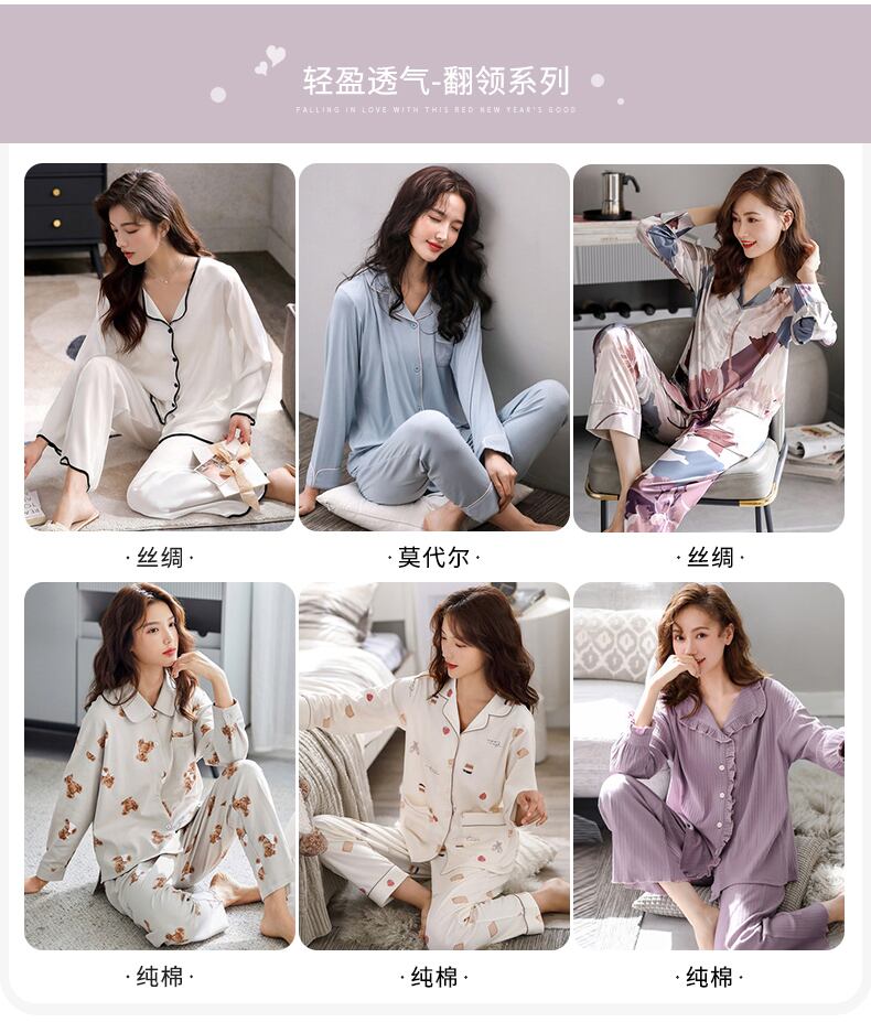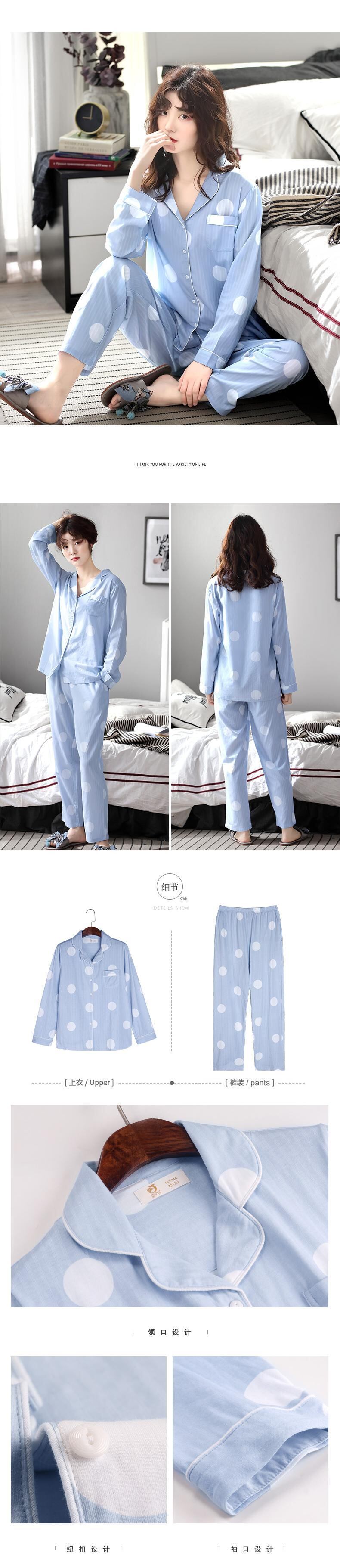 パジャマレディース春秋秋コットン長袖夏薄手コットンホームウェアカーディガンツーピーススーツ jial41901844308