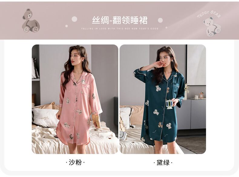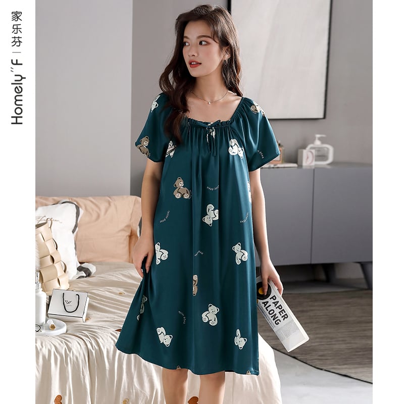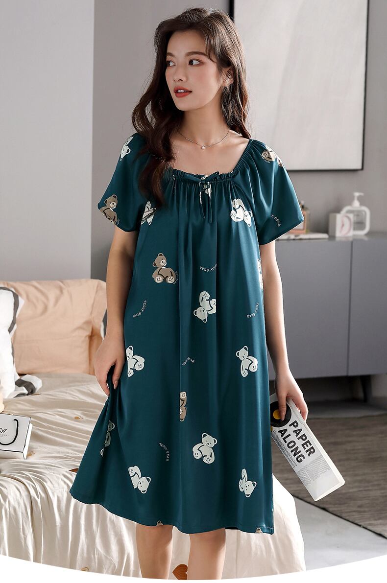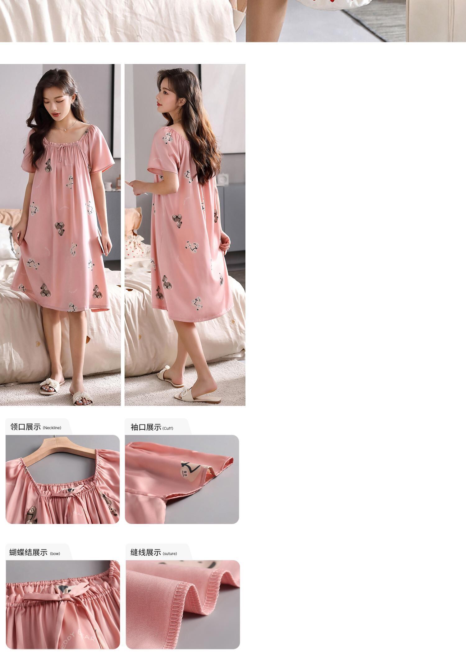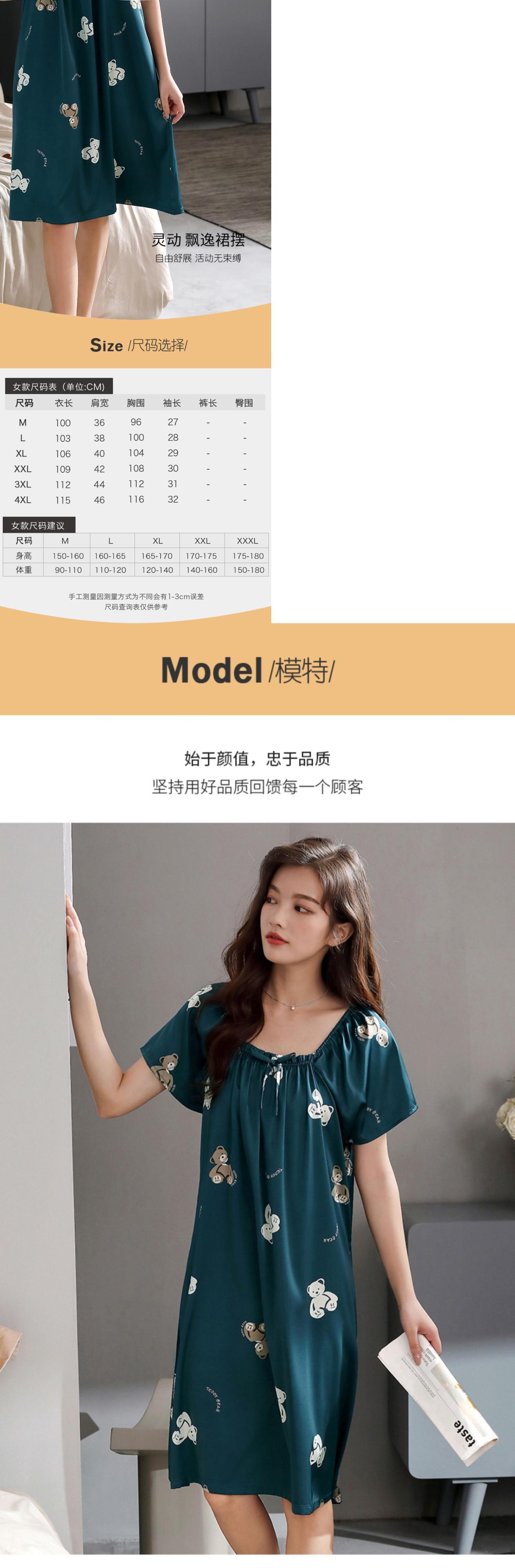 ナイトスカートレディースパジャマスカート夏夏シルクアイスシルク半袖イミテーションシルクキュートスウィートロングXL jial64971022396