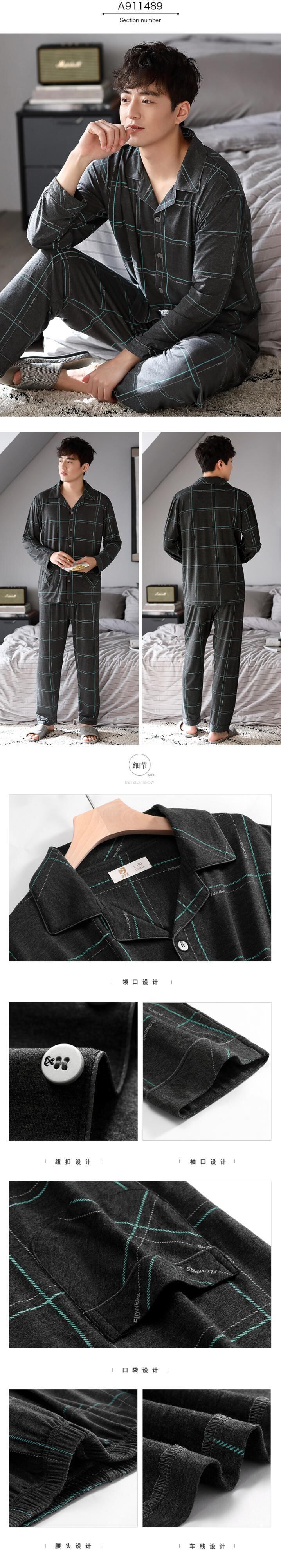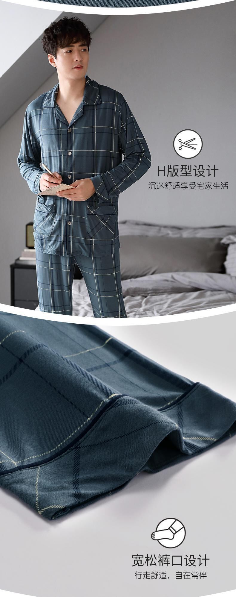 パジャマメンズ春夏長袖モーダルコットンシルクコットンシルク薄手の春秋ホームサービスメンズスーツ jial27235033805