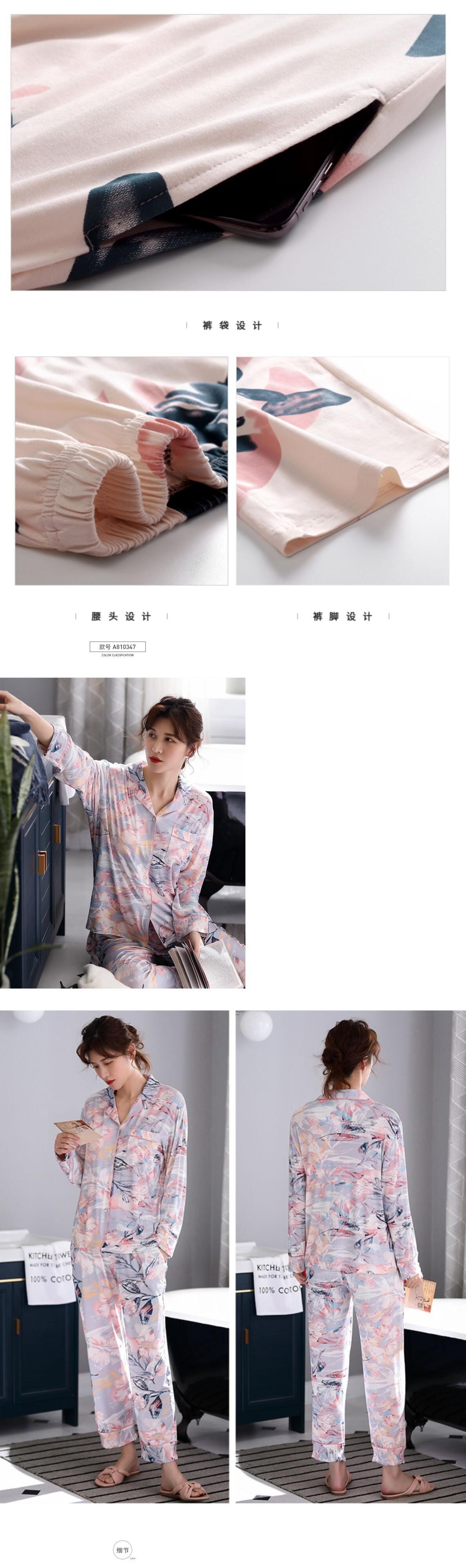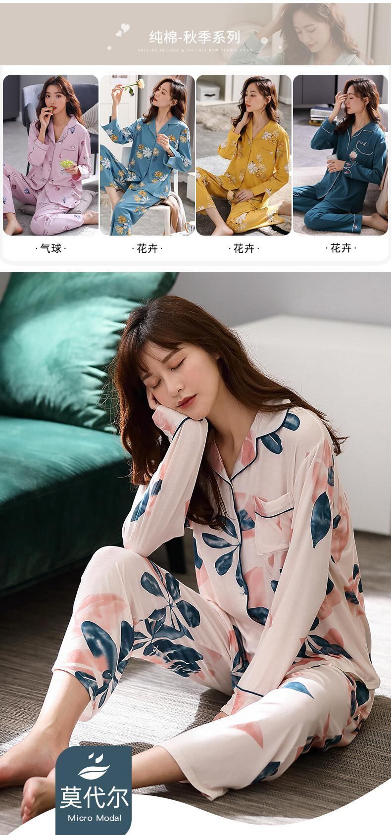 パジャマレディース春春夏夏モーダルコットンシルク長袖ホームサービス春と秋の薄片マザースーツ jial40776843643