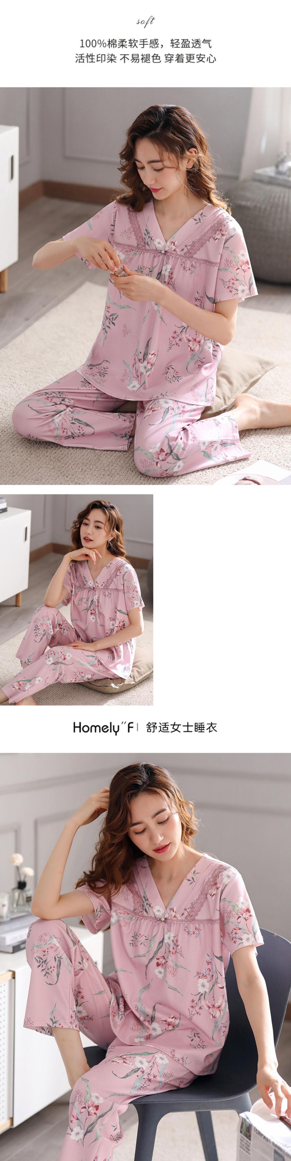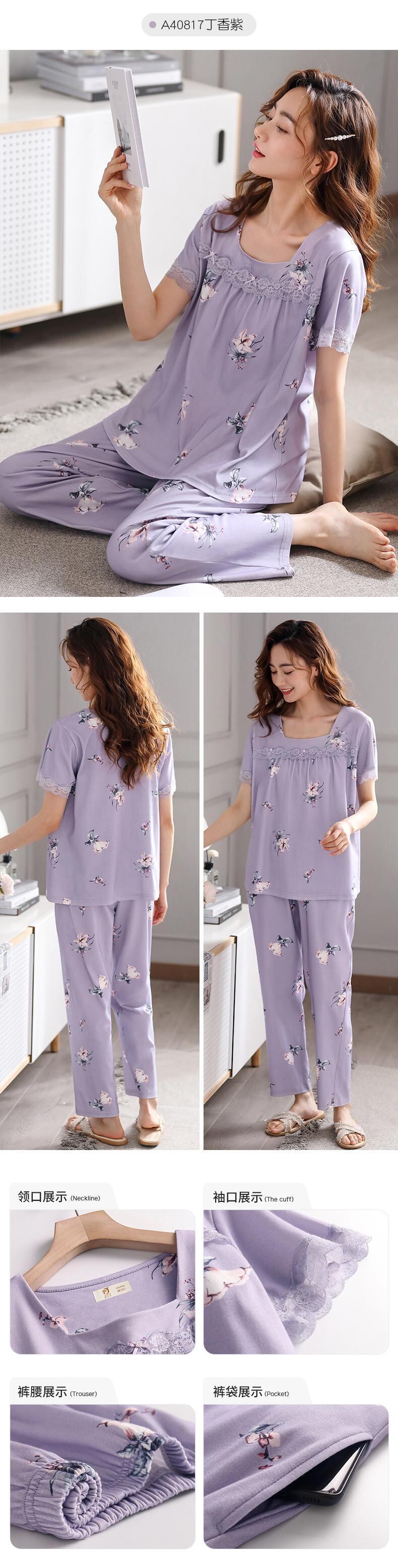 パジャマレディースサマーコットン半袖パンツホームサービスサマー薄手コットン中年マザープラスサイズスーツ jial20917722144