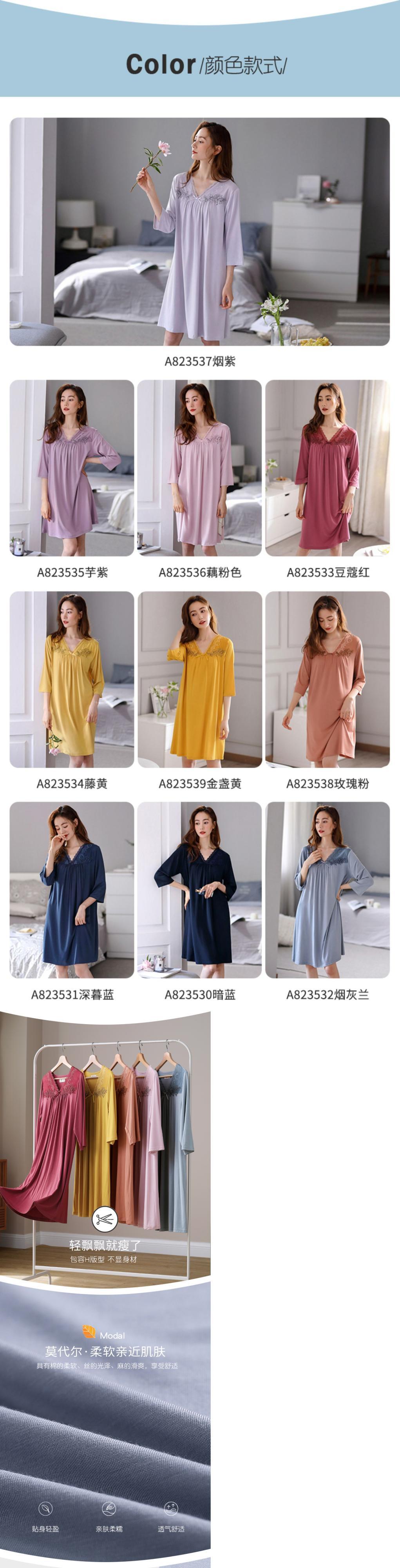 2021年の新しいスタイルのネグリジェレディースパジャマ春夏夏薄切片モーダル7点袖プラスサイズのドレス jial41193232171