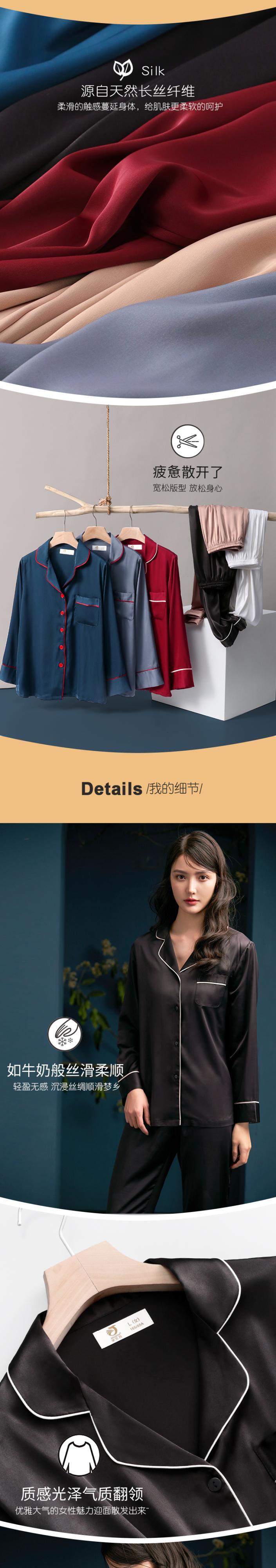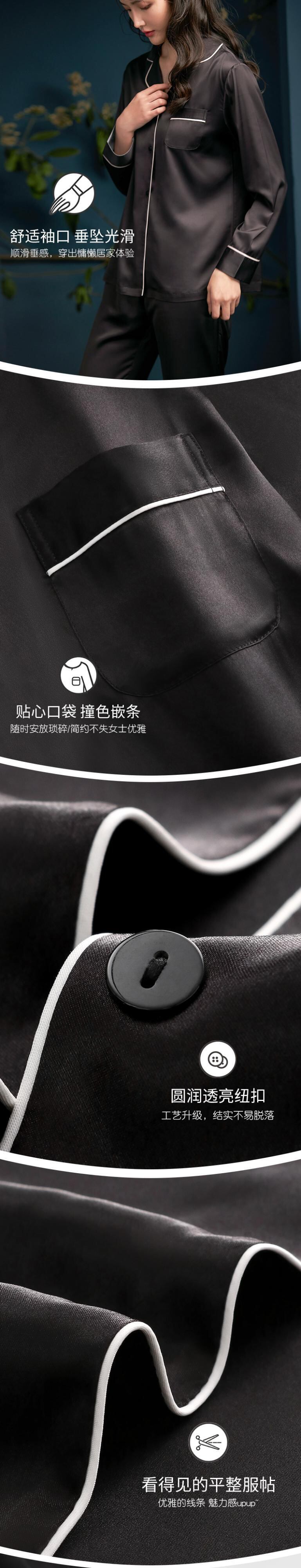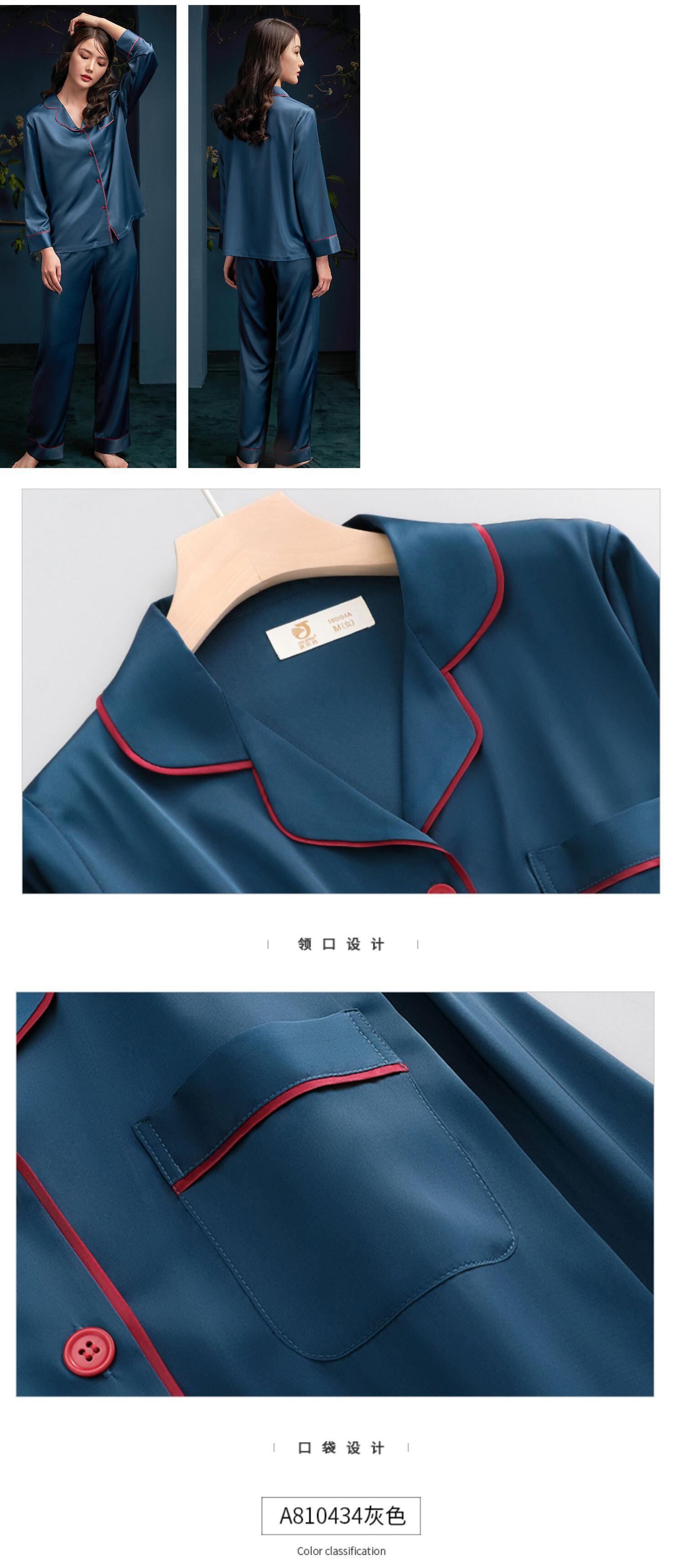 パジャマレディース春夏夏シルクアイスシルク長袖ホームサービス春秋薄片模造シルクブラックスーツ jial76871843630