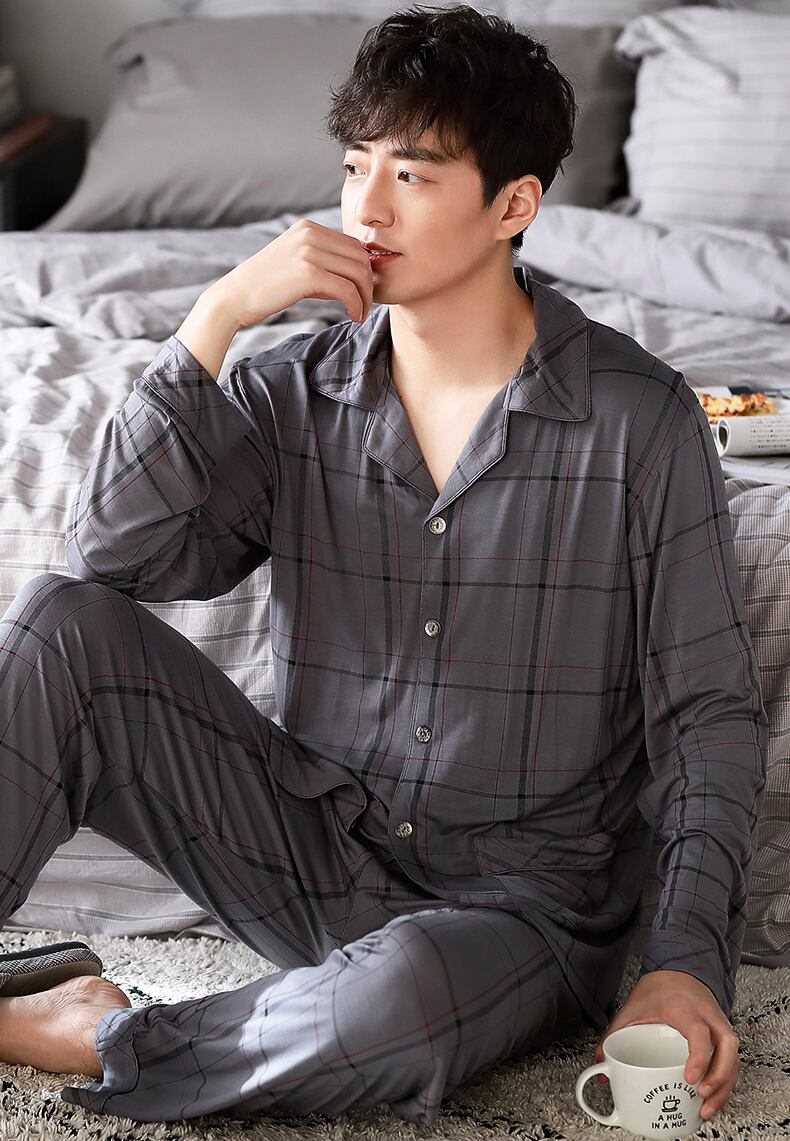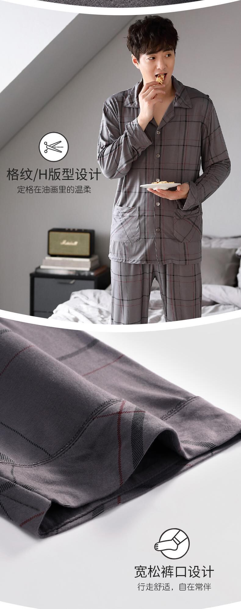 パジャマメンズ春夏夏長袖モーダルコットンシルクコットンシルク薄春春秋ホームサービススーツ jial22456995265