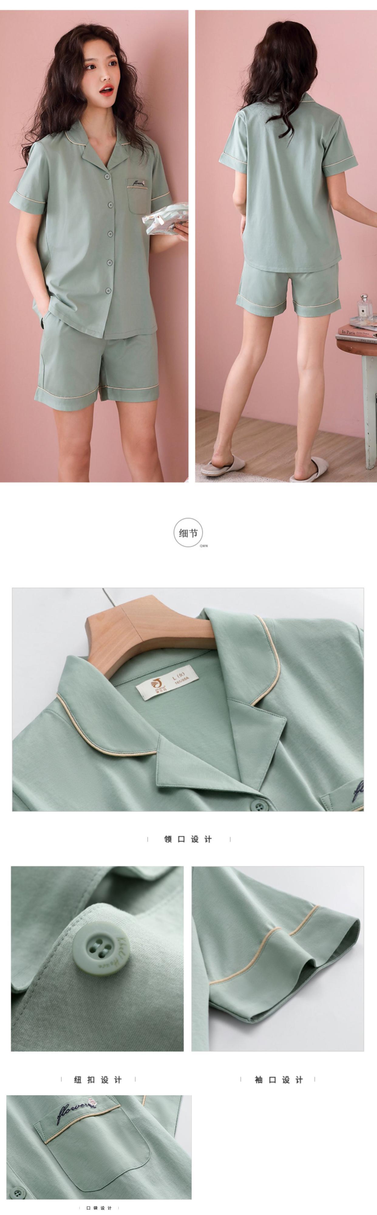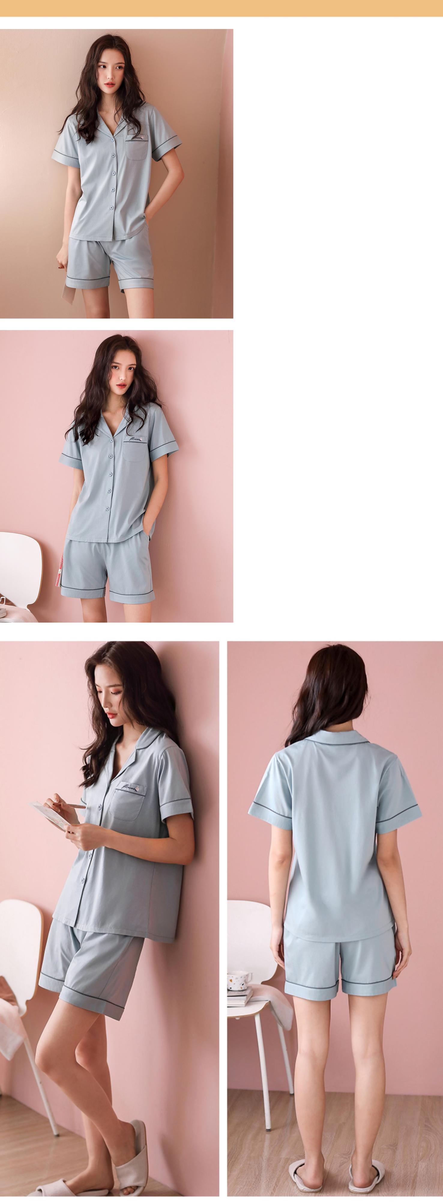 マーセライズドコットンパジャマレディースサマーコットン半袖ショーツホームサービスサマーシンコットンカーディガンルーズスーツ jial12621807436