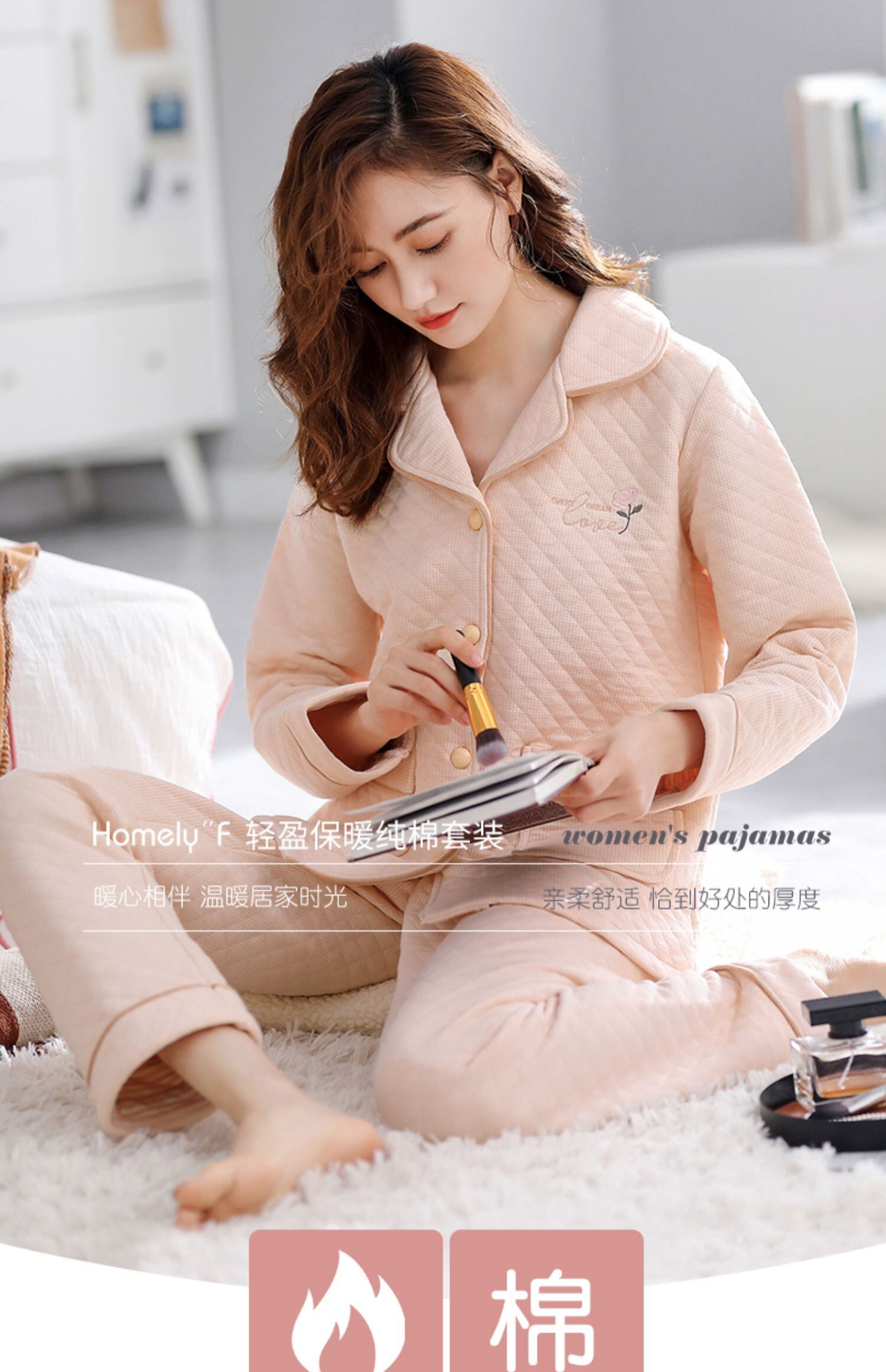エアコットンパジャマレディース春秋厚手純綿長袖家庭服フルコットン秋冬サンドイッチキルティングコットンで保温 jial21992008731