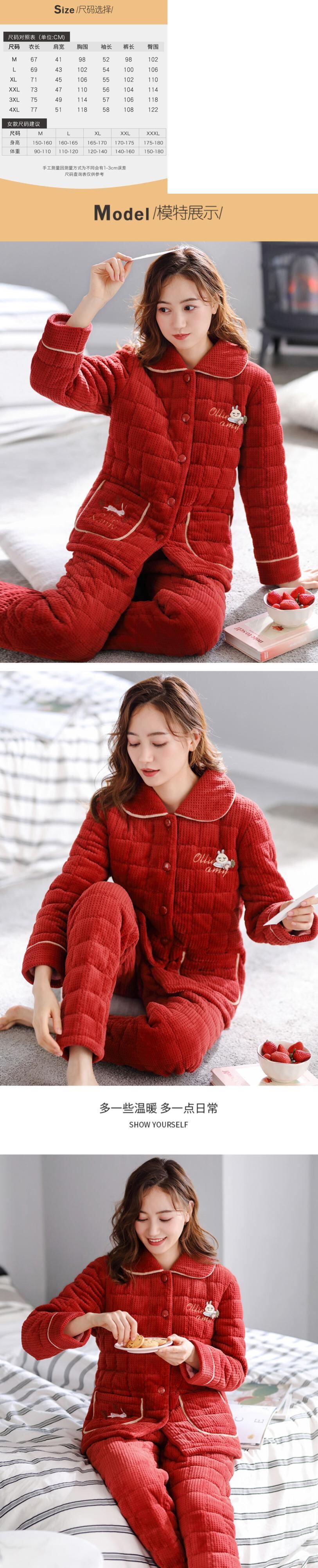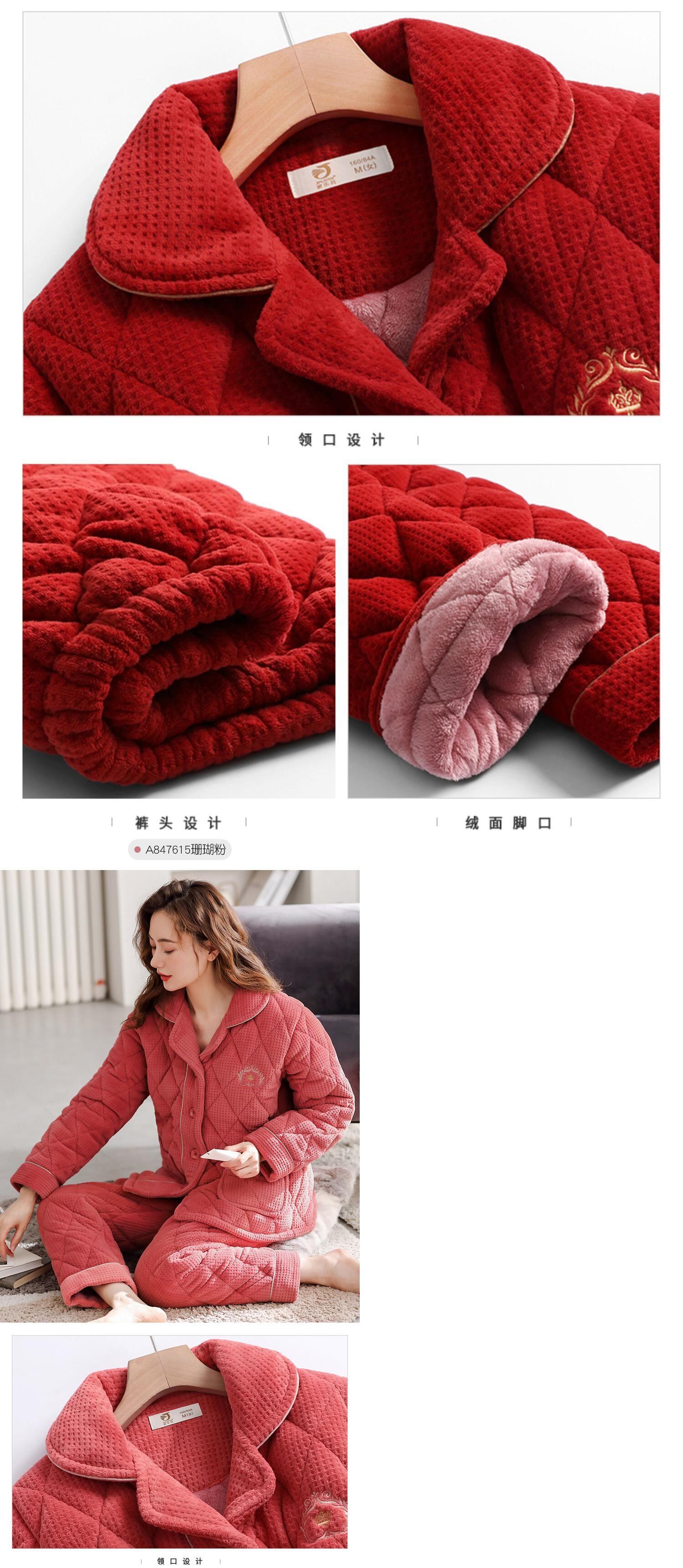 パジャマレディース冬厚キルティングコーラルフリースプラスフランネル秋冬ホームサービス赤出生年 jial37415346177