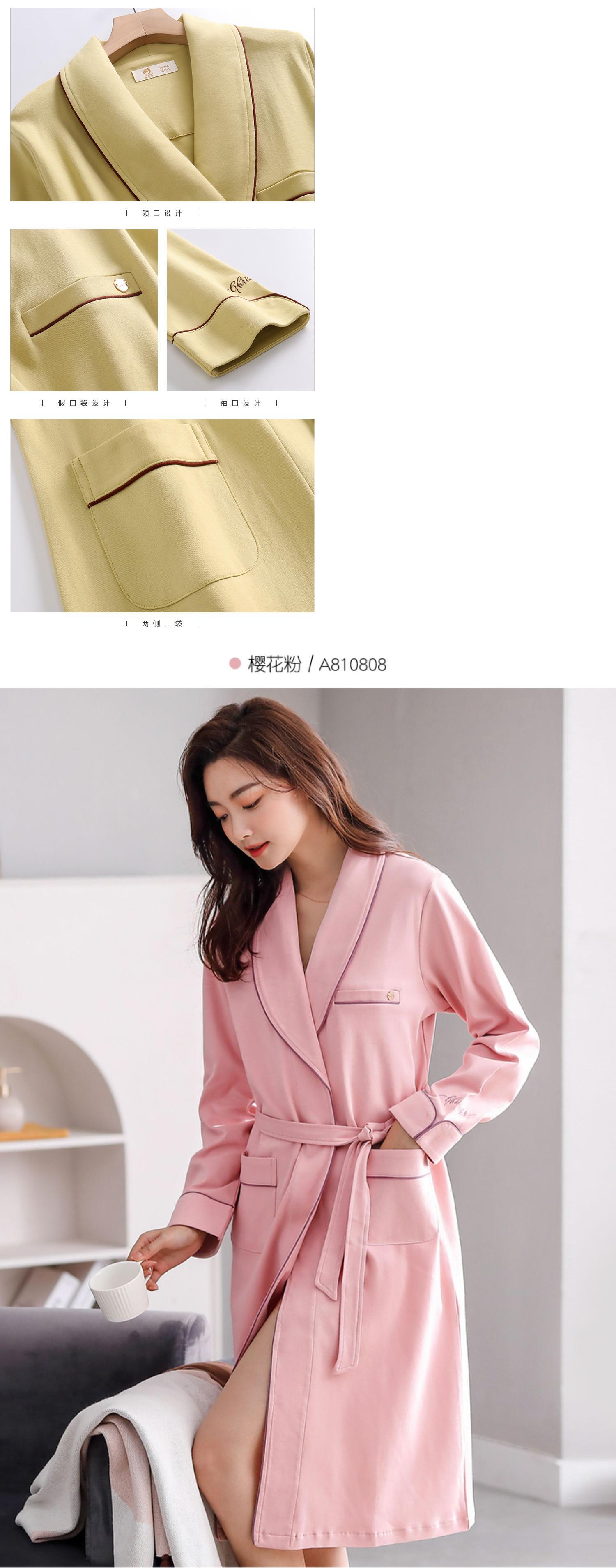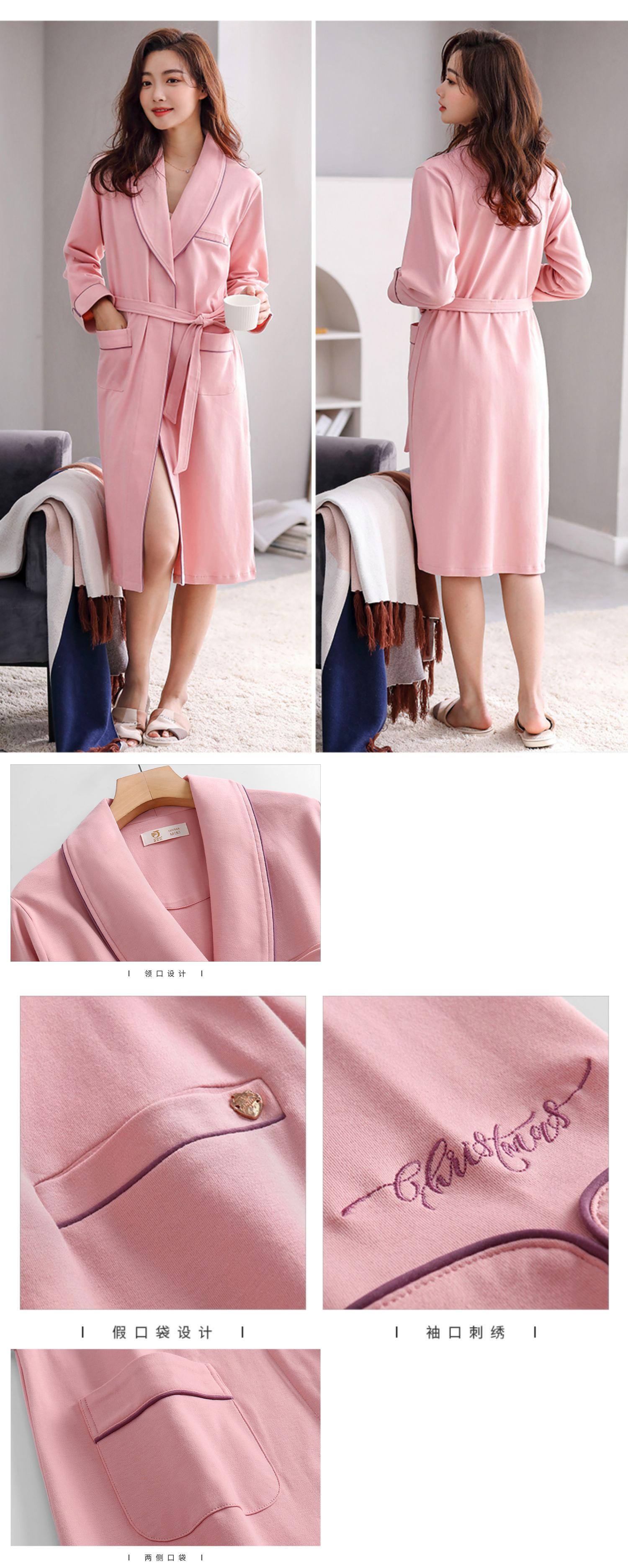 ナイトガウンレディースパジャマ春と秋のスタイルのバスローブナイトドレス長く薄いセクション純綿長袖綿ホームサービス朝着バスローブ jial75998931885