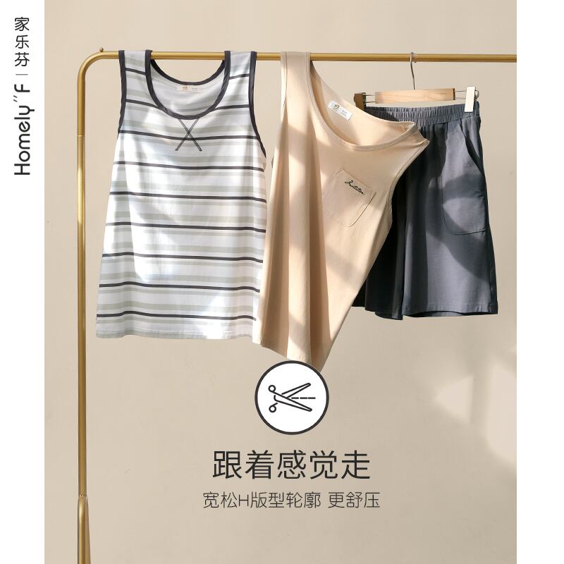 パジャマメンズサマーモーダルコットンシルクベストノースリーブショーツホームウェアカジュアルサマーシンアイスシルクスーツ jial19748421097