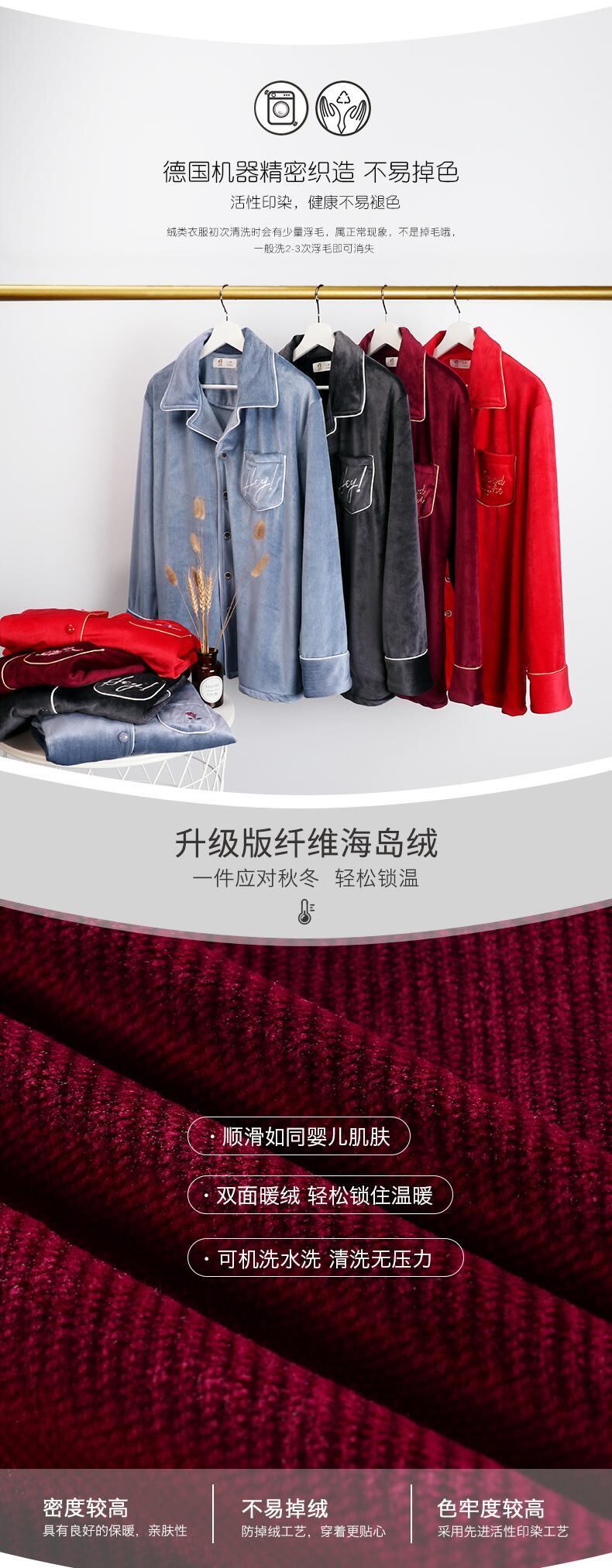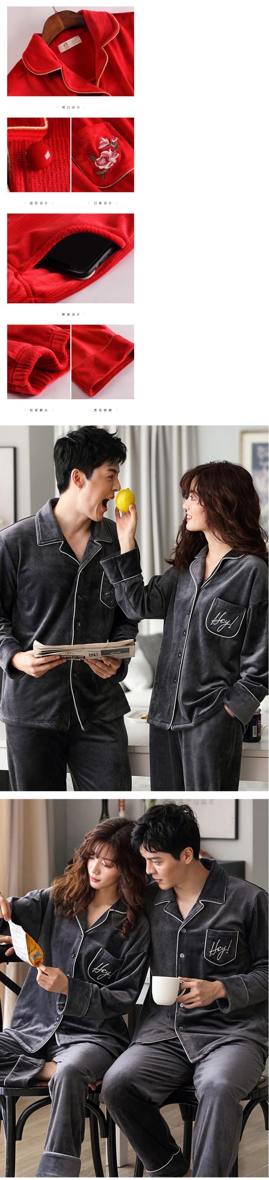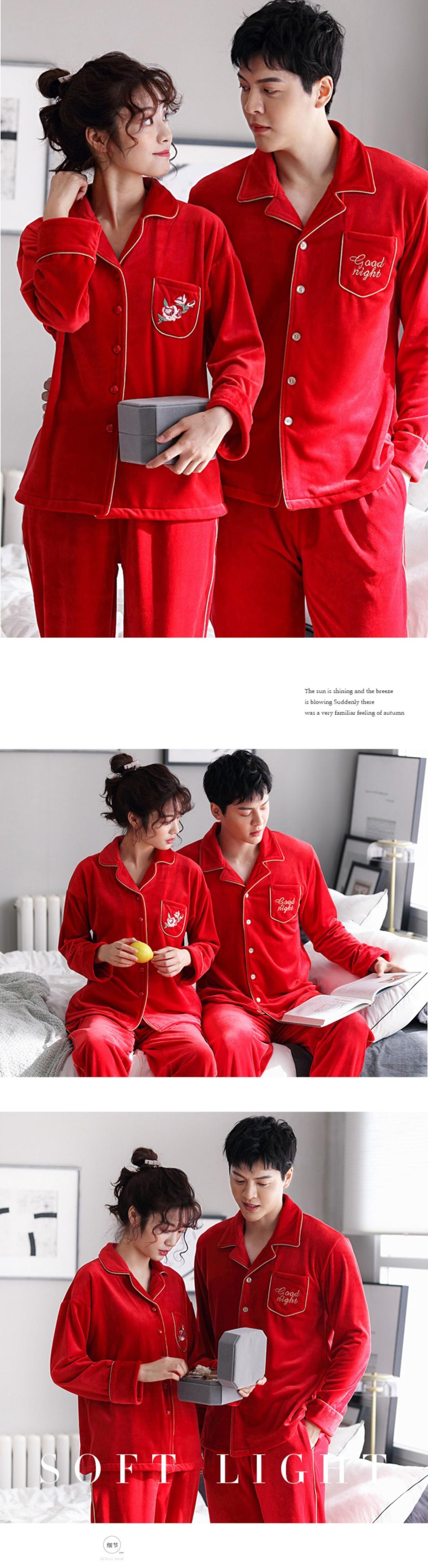 カップルパジャマ女性男性秋冬フランネルプラスベルベット暖かさ厚いコーラルフリース薄片出生赤 jial14238242416