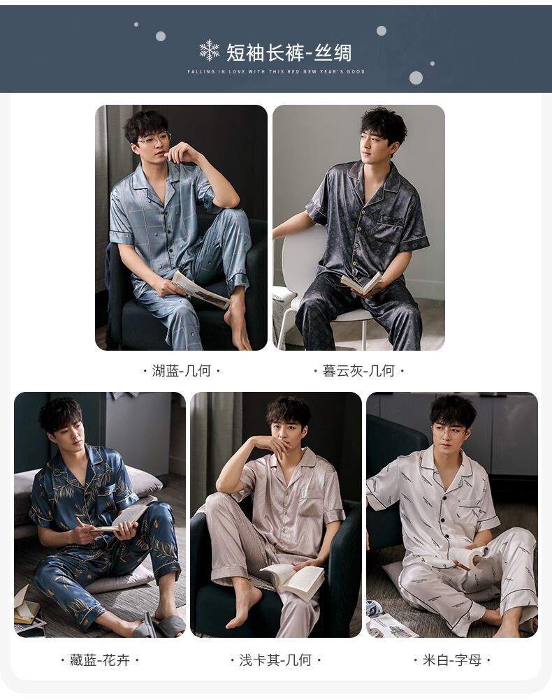 パジャマメンズサマーシルクアイスシルク半袖パンツホームサービスメンズブラックサマー薄片シミュレーションシルクスーツ jial75165524288