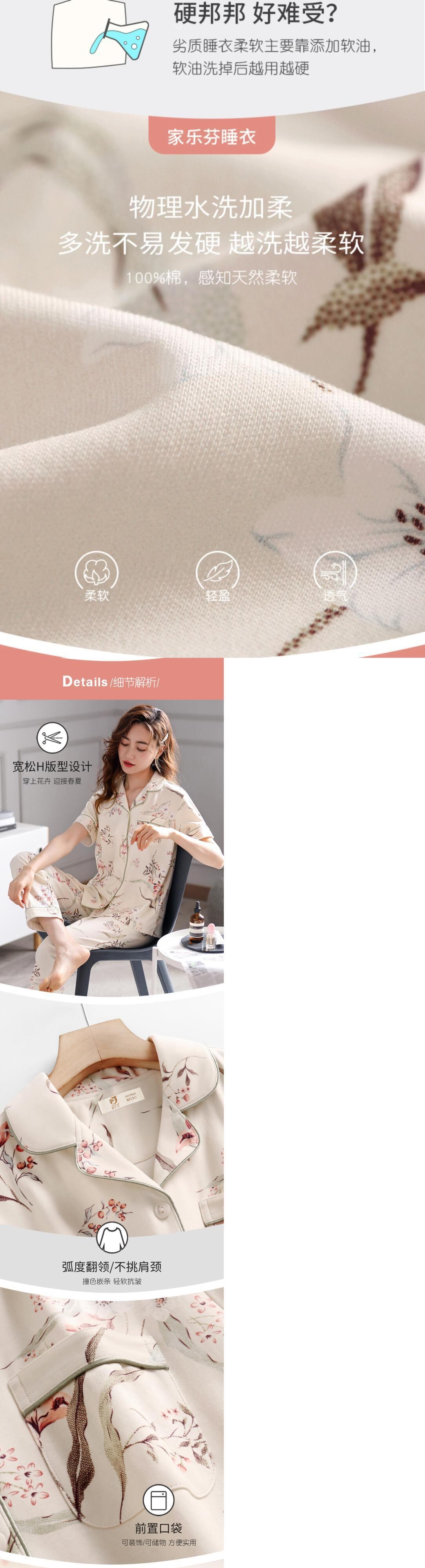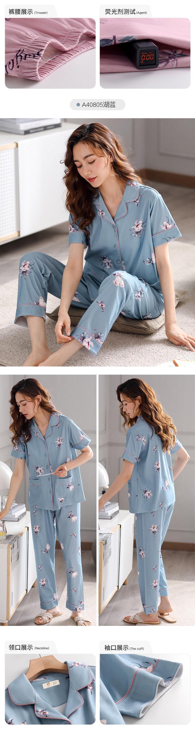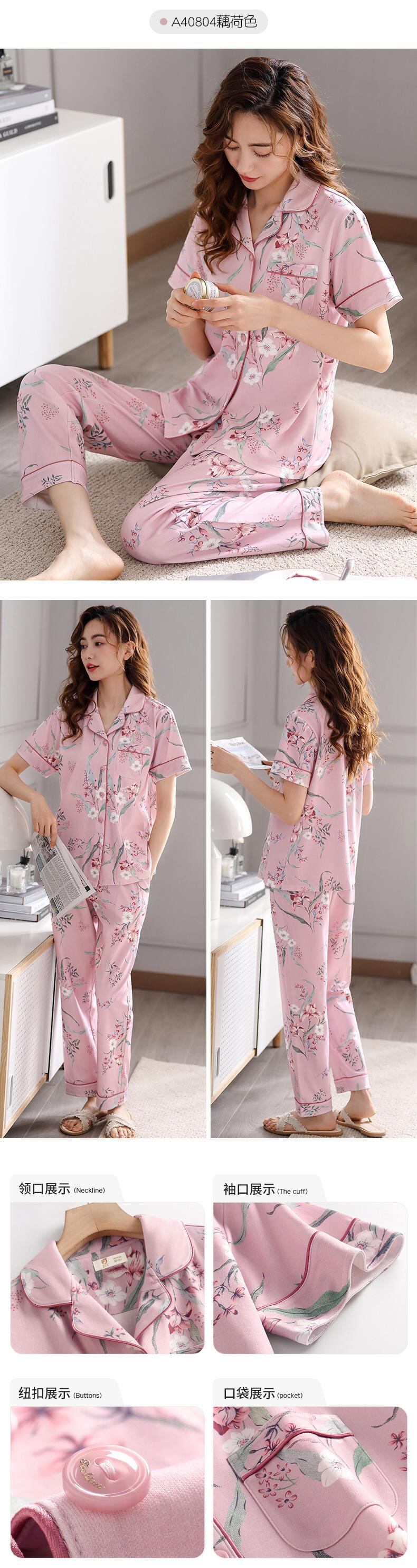 Jialefenパジャマレディースサマーコットン半袖パンツホームサービスサマーシンコットン中年マザースーツ jial89042435084