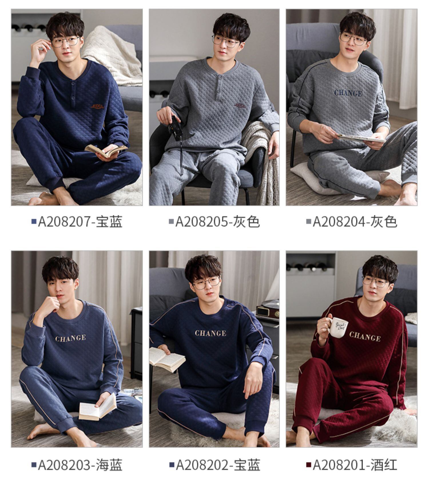 パジャマメンズ春秋長袖純綿厚手ホームサービス秋冬冬薄綿エアコットンスーツ jial39111796494
