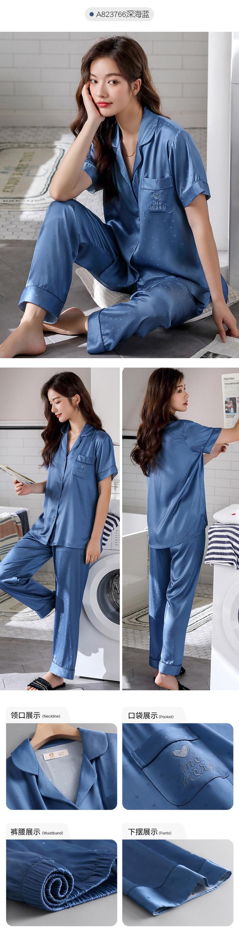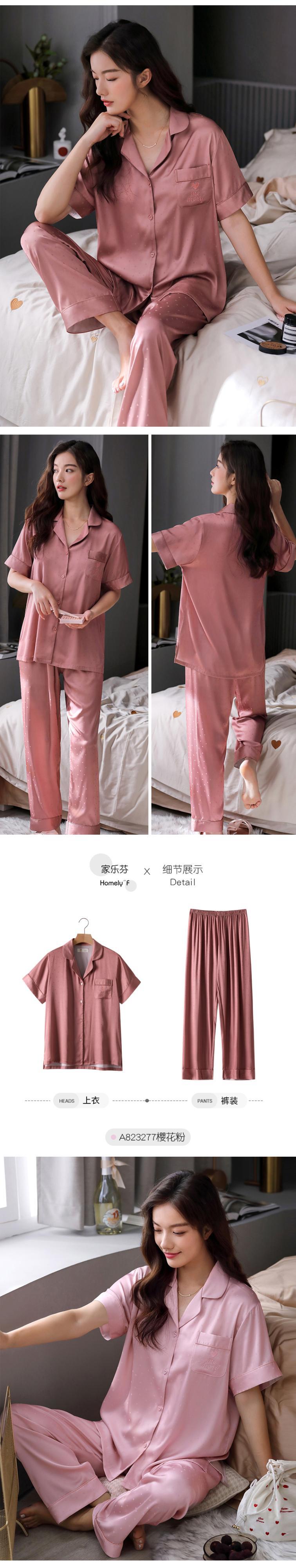 パジャマレディースサマーシルクアイスシルク半袖パンツホームサービス夏薄人工シルクラージサイズツーピーススーツ jial52050442104