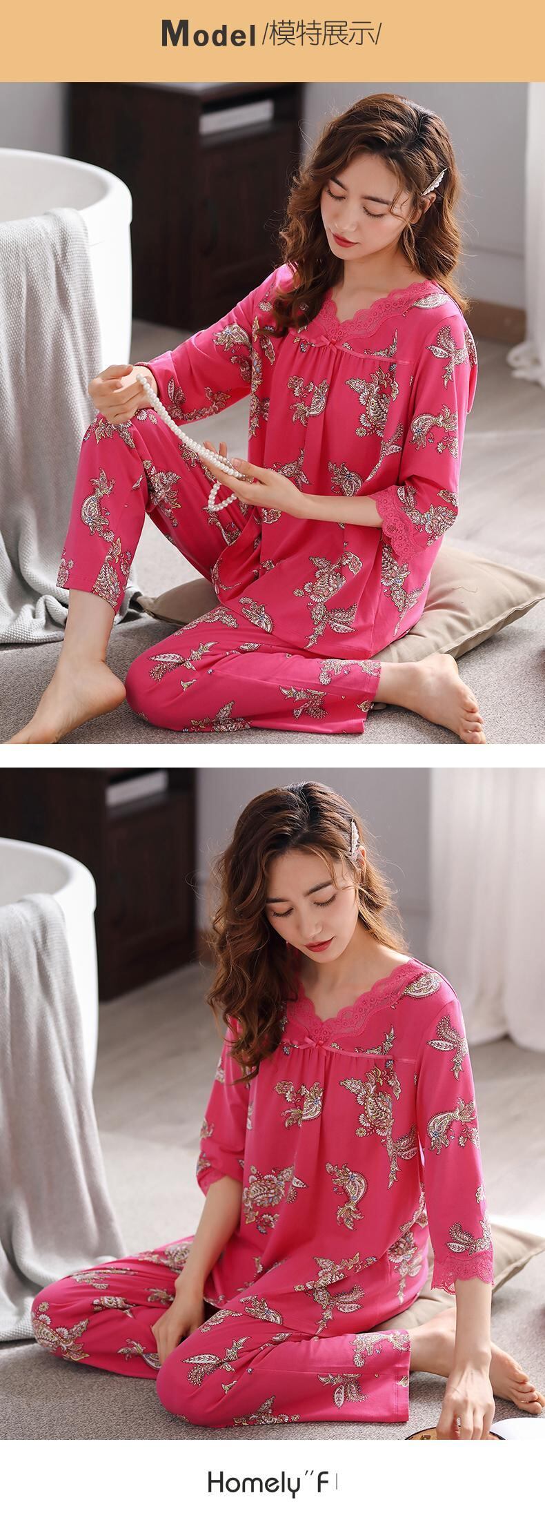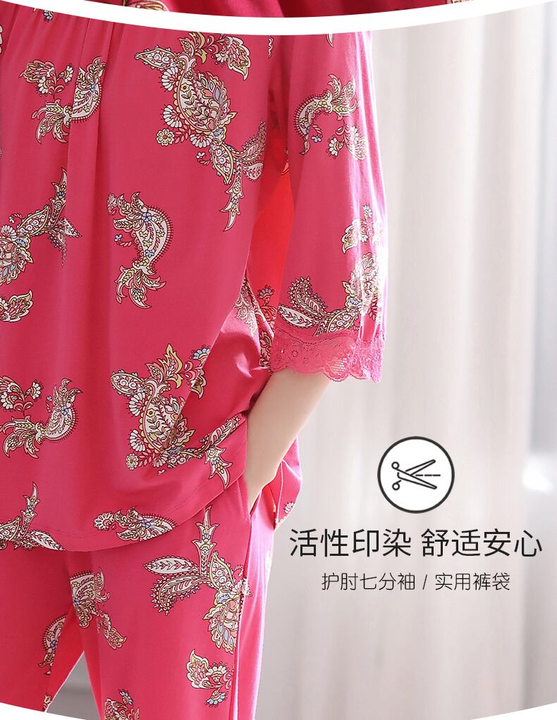パジャマレディース春夏七分袖モーダルコットンシルクコットンシルク長袖ホームサービス春秋薄中年 jial25296502411