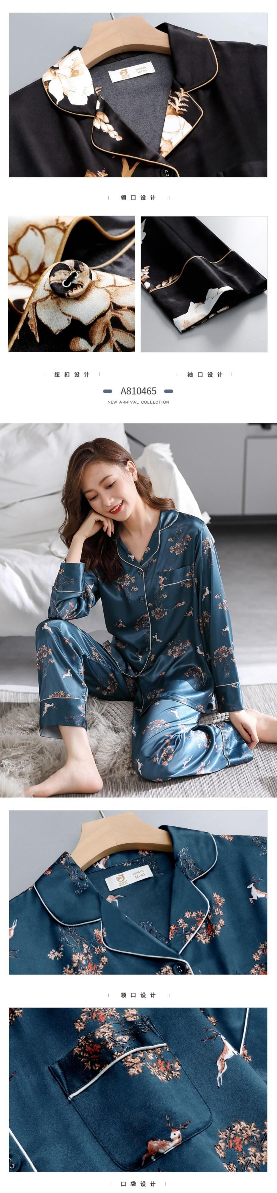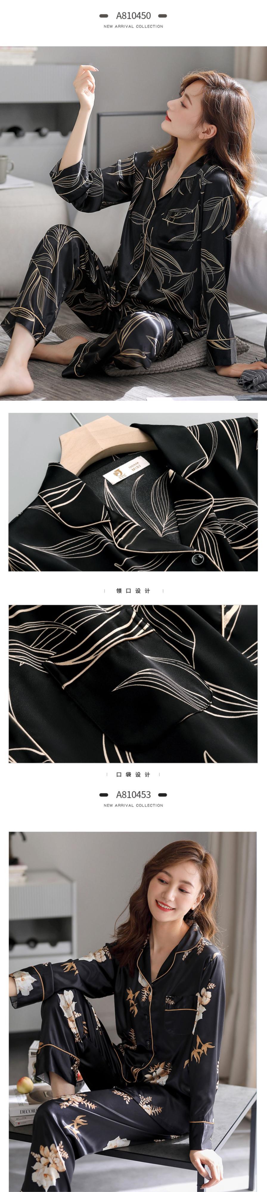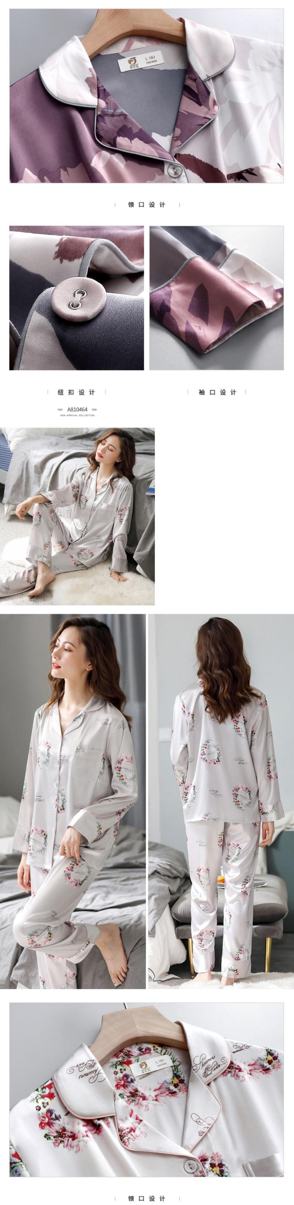 パジャマレディース春夏シルクアイスシルク長袖ホームサービス春秋モデル秋シルク薄手のツーピーススーツ jial11724221511