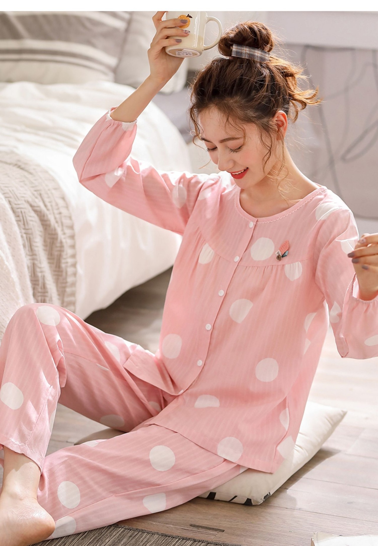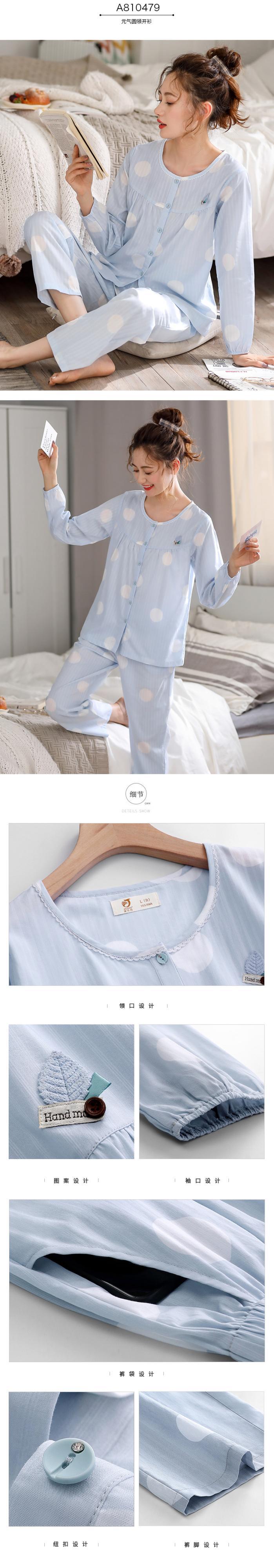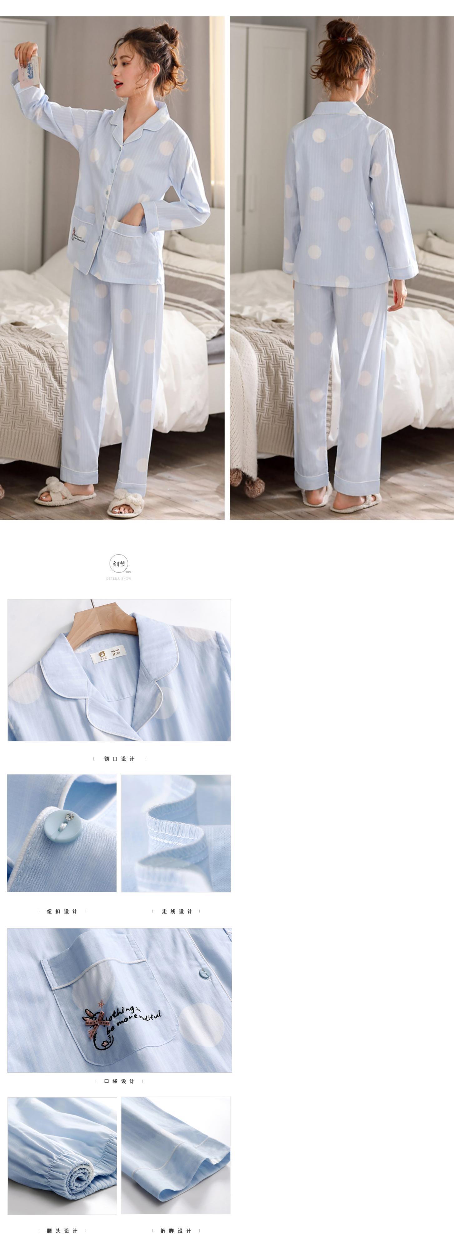 織り綿ガーゼパジャマ女性の春と夏の純綿長袖ホームサービス綿薄い春と秋のスタイルの秋のスーツ jial65638908618