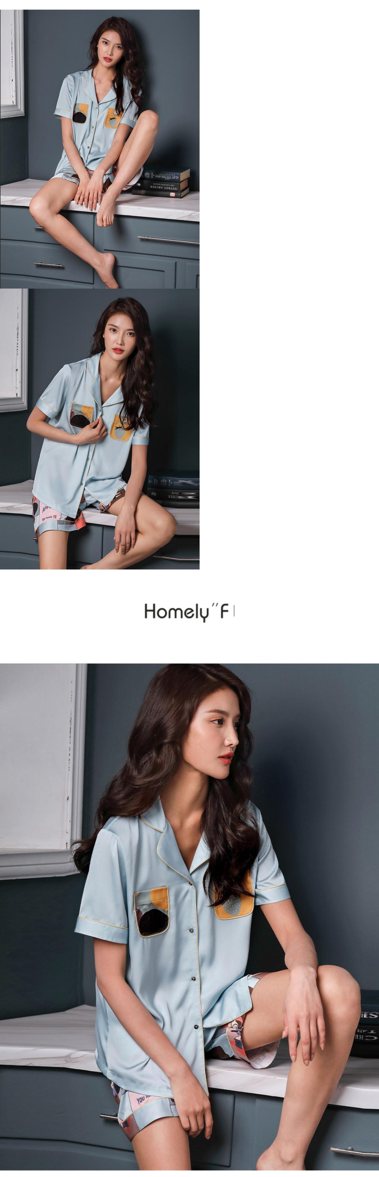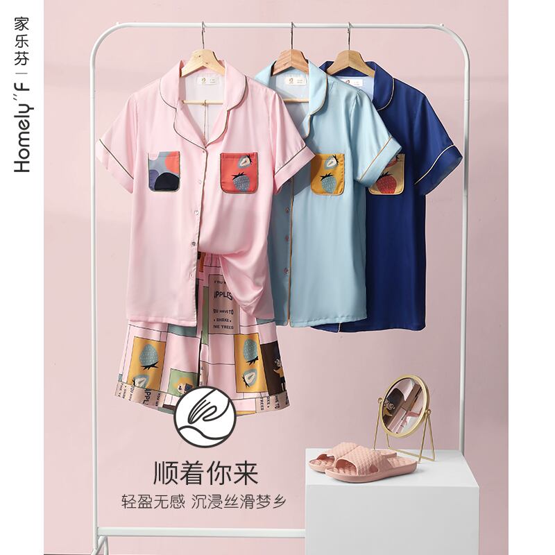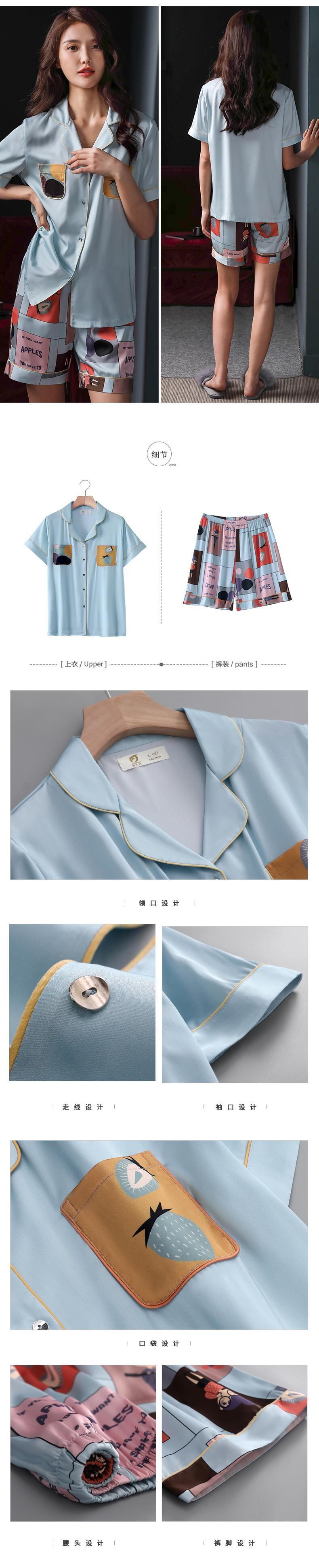 パジャマレディース夏シルクアイスシルク半袖ショーツホームサービス夏薄人工シルクファッションカジュアルスーツ jial52571090990