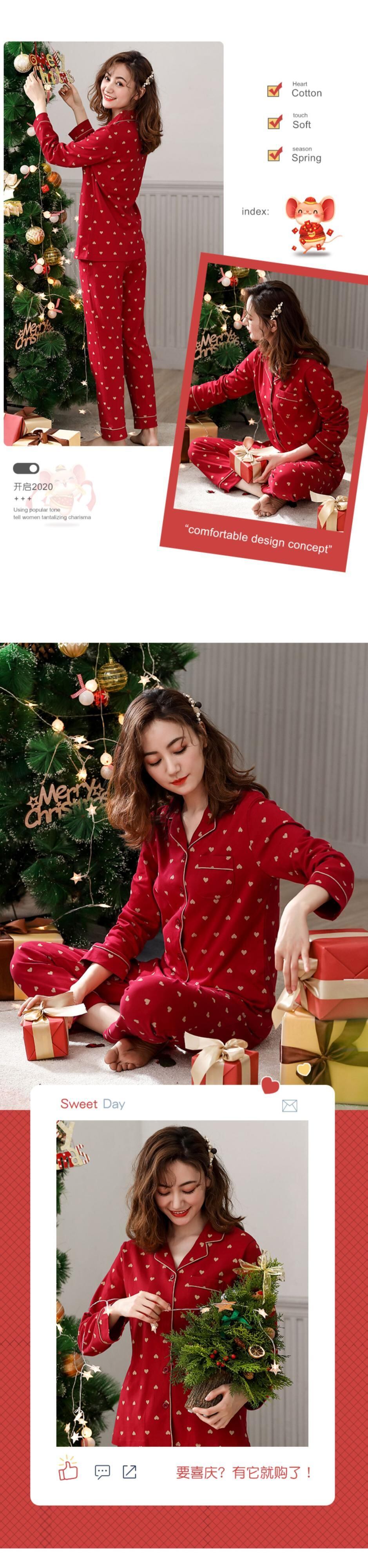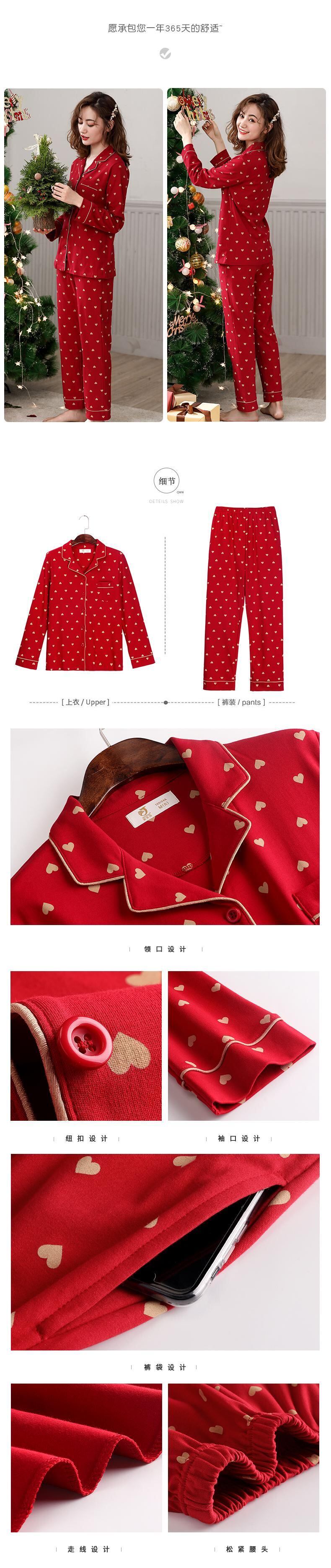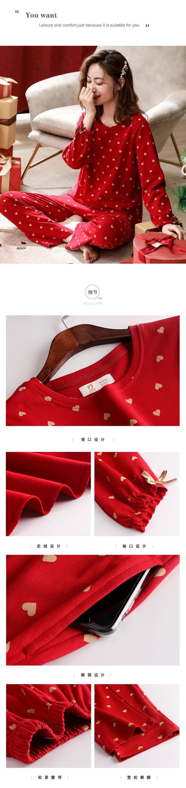 パジャマレディース春冬モデル秋コットン長袖ホームサービスコットン秋冬出生年レッドスーツ jial68980084110