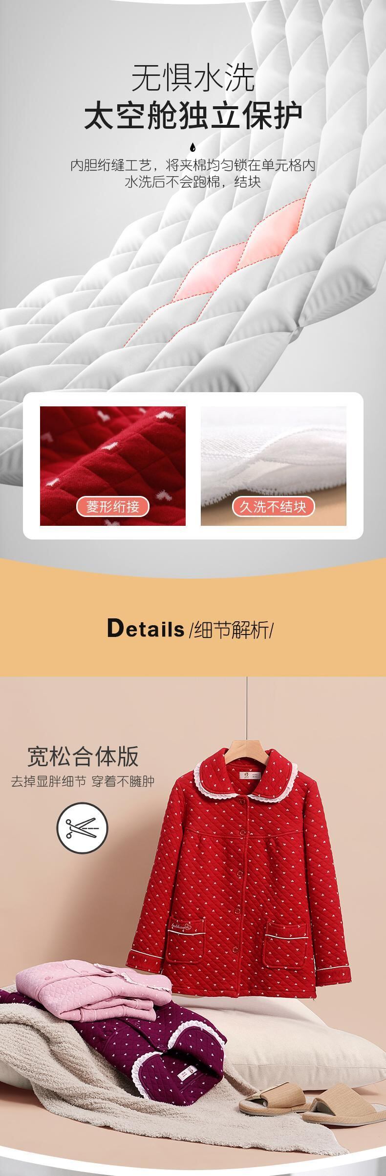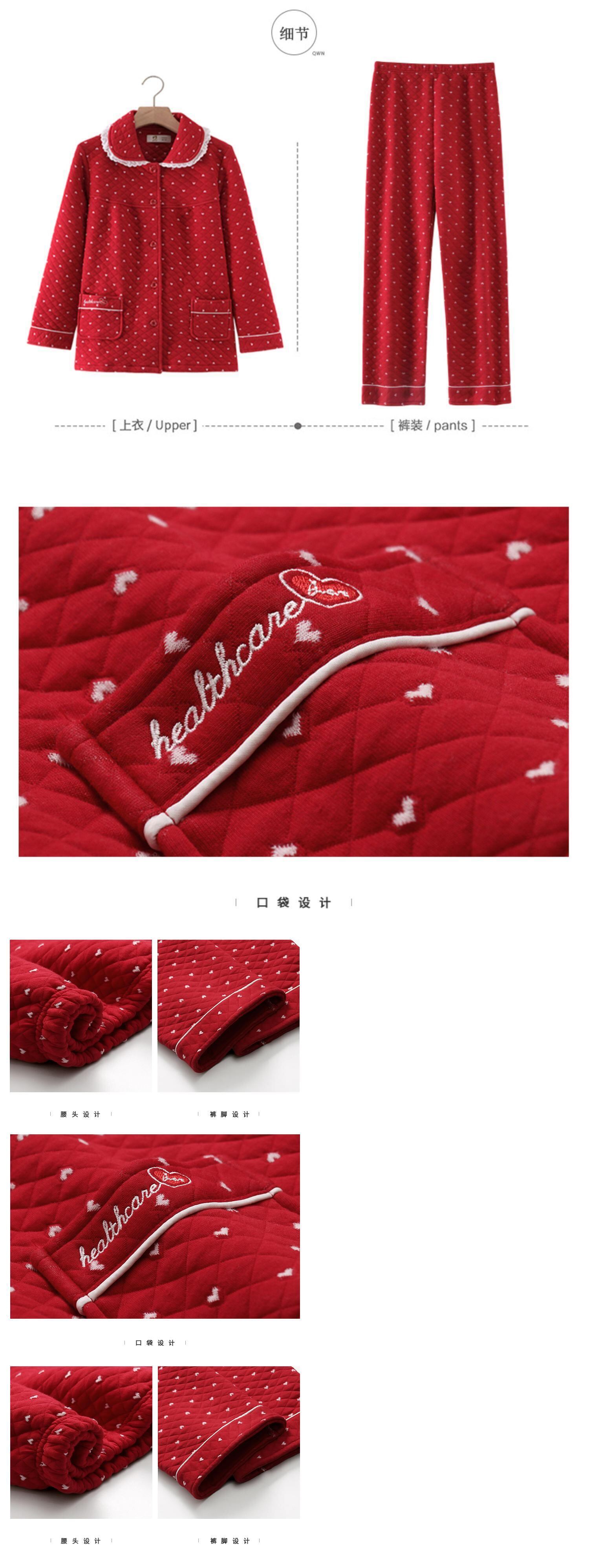 パジャマ女性の春と秋のモデル秋の厚い純綿長袖秋と冬のモデル綿エアコットンキルティング大きな赤い出生年 jial55225125661