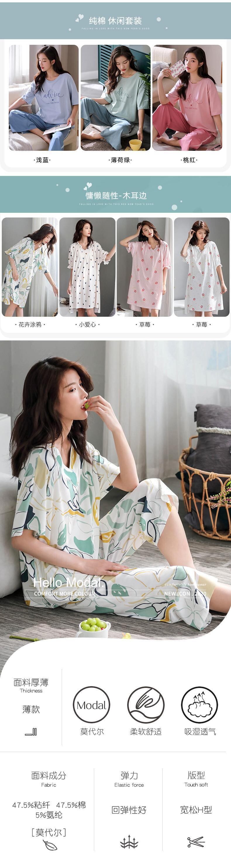 パジャマ女性夏のモーダルコットンシルク半袖夏の家庭服薄いアイスシルクカジュアルスーツ外で着用することができます jial60440655383