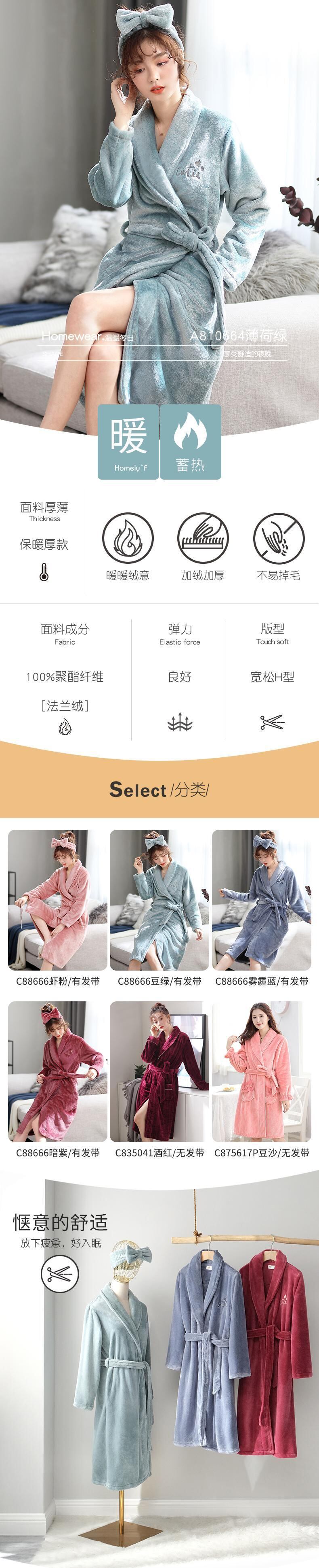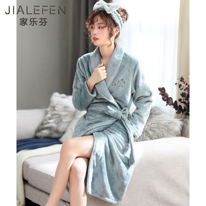 ナイトガウンレディース秋冬ロングコーラルベルベット厚めプラスベルベット暖かさ甘くて素敵なバスローブモーニングローブバージョンのラージサイズ jial92146417264