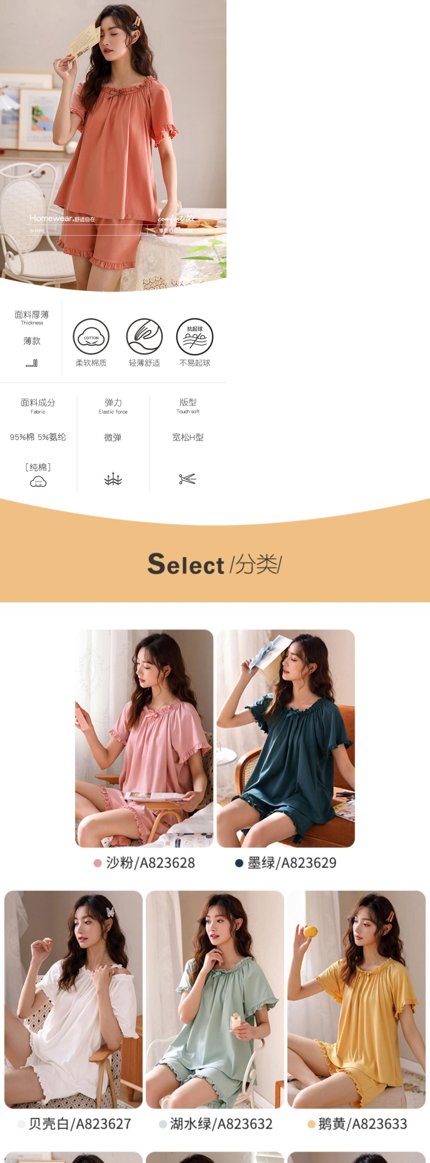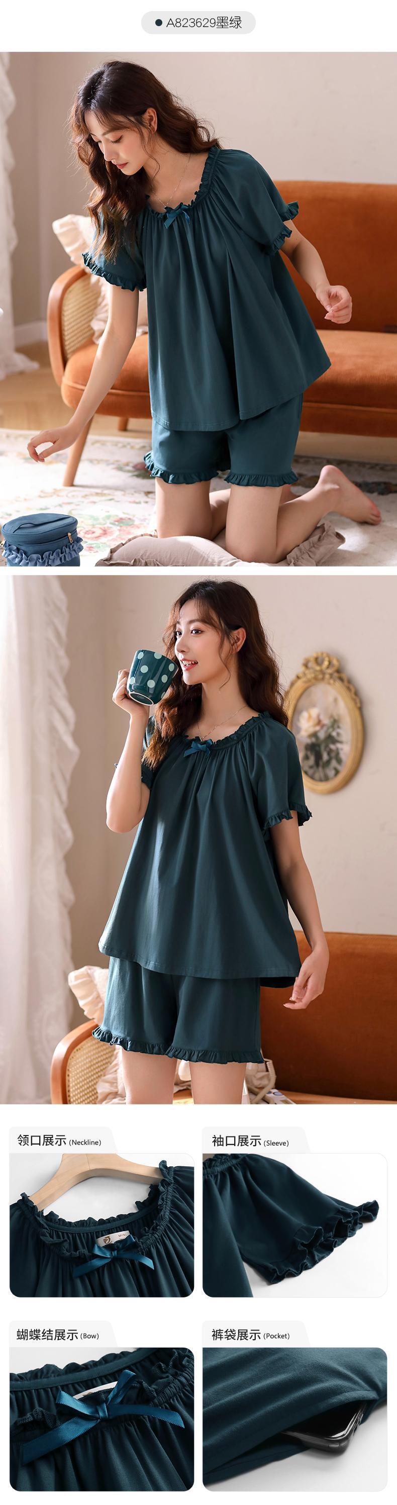 パジャマレディースサマーコットン半袖ショーツホームサービス夏薄セクションかわいい甘いeseコットンスーツ jial86887387590