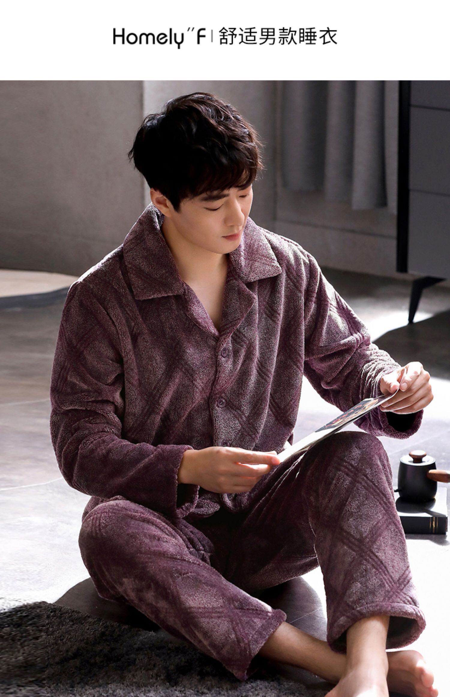 パジャマメンズ秋冬モデルと冬コーラルベルベット厚みとベルベット暖かさフランネルホームサービスメンズウィンタースーツ jial35932658064