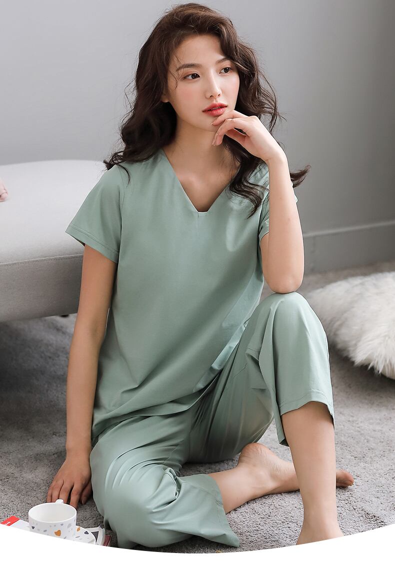 マーセライズドコットンパジャマレディースサマーコットン半袖パンツホームサービスサマーシンコットンチェストパッドブラカジュアル jial51443141728