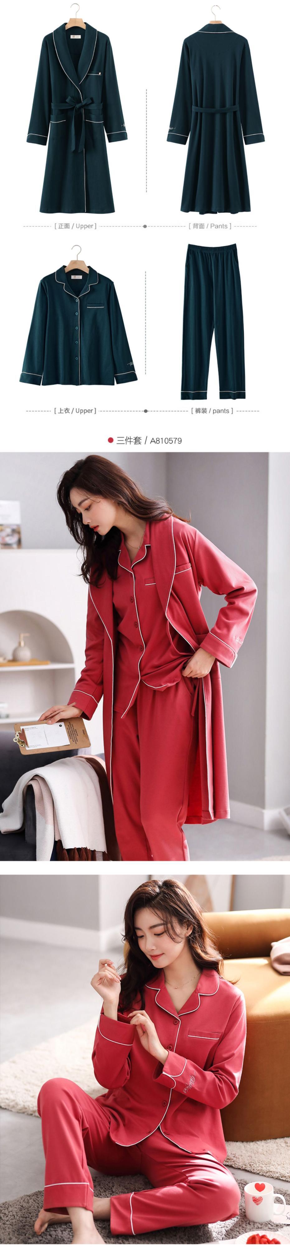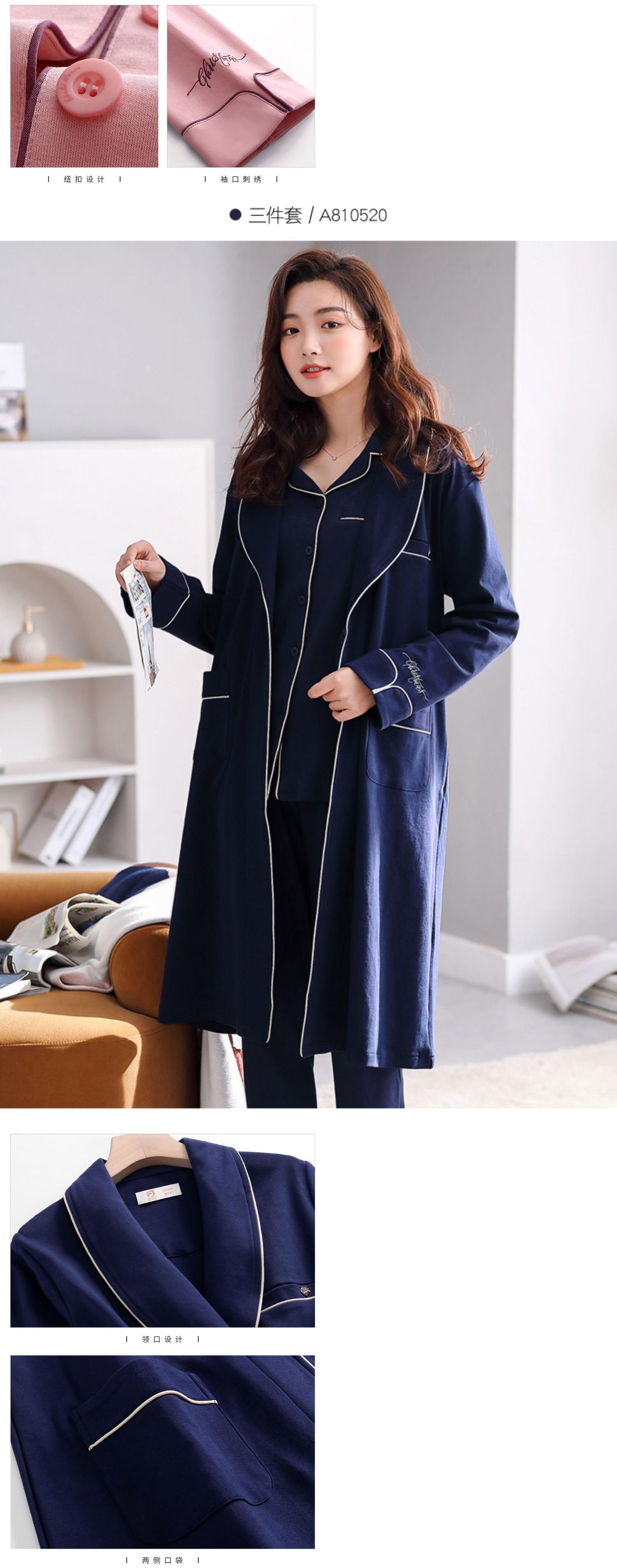 スリーピングガウンレディースパジャマ春と秋のバスローブナイトドレス長く薄い綿長袖綿ホームサービススリーピーススーツ jial99220160787
