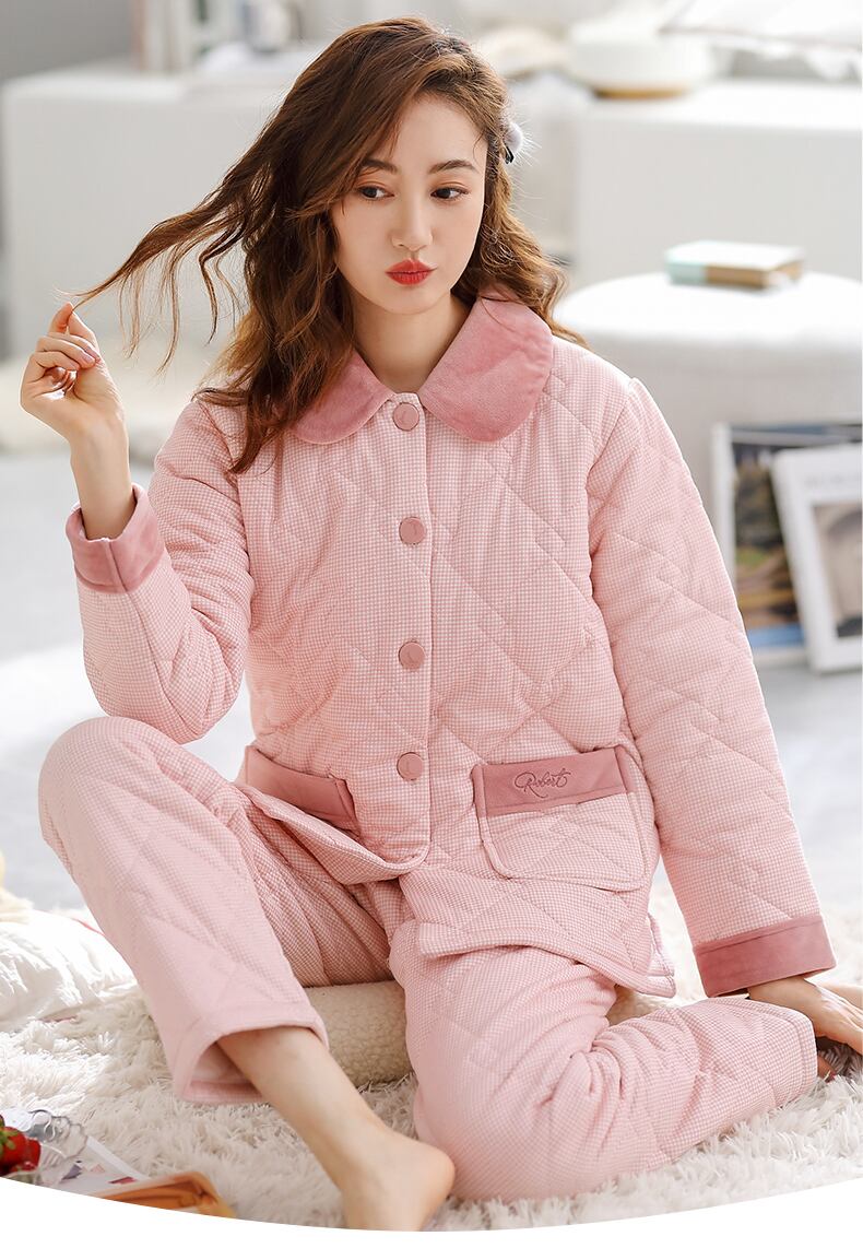 パジャマ女性冬3層厚手の純綿キルティング秋冬ホームウェアプラス綿暖かい綿プラスサイズ jial73161483577