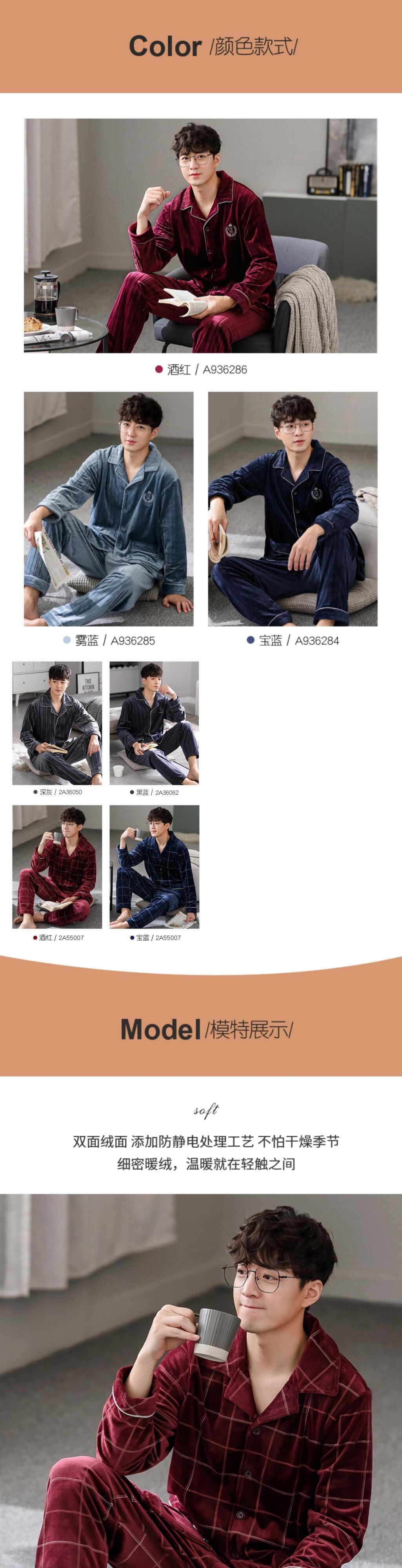 パジャマメンズ春秋薄珊瑚フランネルホームサービス秋冬冬島フリース厚めプラスフリース jial59628539726